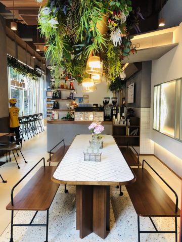 由世界顶级建筑大师让·努维尔设计的恒基·旭辉天地,是中国首个光影建筑作品。在这座红色地标性建筑物中隐藏着一间来自法国的面包房,它就是Moofin Bakery & Coffee摩芬宜。 温暖的原木色泽衬托着浓郁的香甜,香气穿梭在绿植之间,令人念念不忘。 在Moofin Bakery & Coffee空间,光线照射在原始木质表面上而形成的漫反射,与金属动线相融合,为整个空间带来了内敛而隐蔽的艺术氛围。 moofin的老板喜欢周游世界,并且他会把每到一处所淘到的特色摆件带回店里,经过设计师的精心思考与合理搭配,形成了一种井然有序的布局,超越了空间本身,存在于功能与情感之间的纽带,为顾客呈现出一种岁月静好的空间氛围。 人们总是会被美好的事情所打动,而触碰我们心底最柔软部分的正是五官所带来的感受。坐在这静谧、素雅、质朴的摩芬宜空间,慢慢品味的咖啡、面包,轻轻聊着闺蜜之间的话题,很有一种惬意的享受。