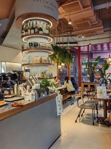 霞光升起由世界顶级建筑大师让·努维尔设计的恒基·旭辉天地,是中国首个光影建筑作品。在这座红色地标性建筑物中隐藏着一间来自法国的面包房,它就是Moofin Bakery & Coffee摩芬宜。 温暖的原木色泽衬托着浓郁的香甜,香气穿梭在绿植之间,令人念念不忘。 在Moofin Bakery & Coffee空间,光线照射在原始木质表面上而形成的漫反射,与金属动线相融合,为整个空间带来了内敛而隐蔽的艺术氛围。 moofin的老板喜欢周游世界,并且他会把每到一处所淘到的特色摆件带回店里,经过设计师的精心思考与合理搭配,形成了一种井然有序的布局,超越了空间本身,存在于功能与情感之间的纽带,为顾客呈现出一种岁月静好的空间氛围。 人们总是会被美好的事情所打动,而触碰我们心底最柔软部分的正是五官所带来的感受。坐在这静谧、素雅、质朴的摩芬宜空间,慢慢品味的咖啡、面包,轻轻聊着闺蜜之间的话题,很有一种惬意的享受。