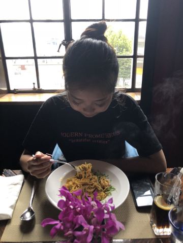 外滩6号的《悦6》,环境很好,就在黄浦江边上,可以边吃边看江景,周日去吃的午市套餐,很划算,108有前菜有汤有主菜有饮料,很推荐,主菜的蟹粉意面特别好吃。
