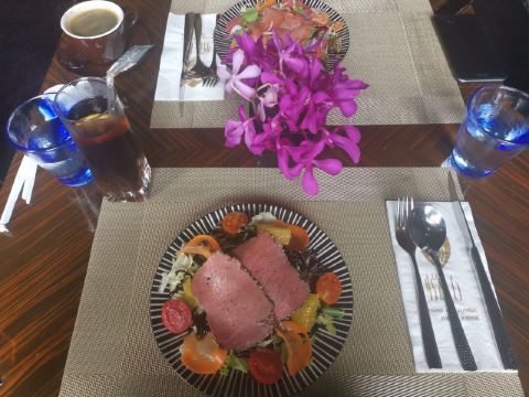这里的view非常好,在外滩六号,正对陆家嘴。 西餐也不错,服务也很好。购买的是套餐,包括牛尾、三文鱼、沙拉、甜点等。 下次还会再去。