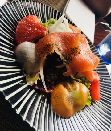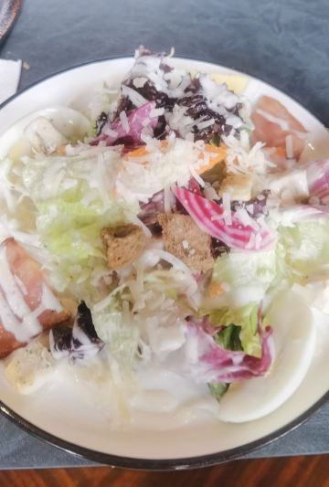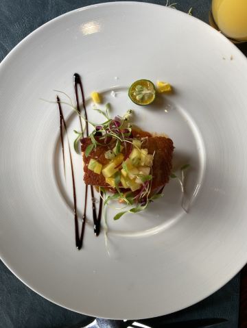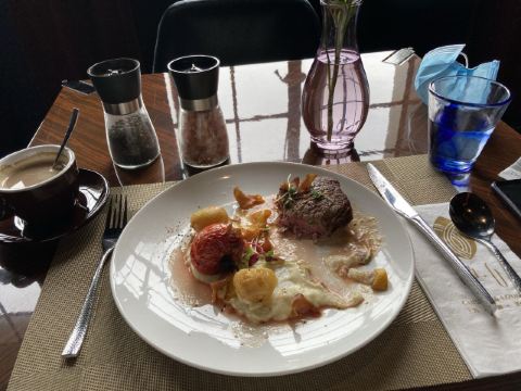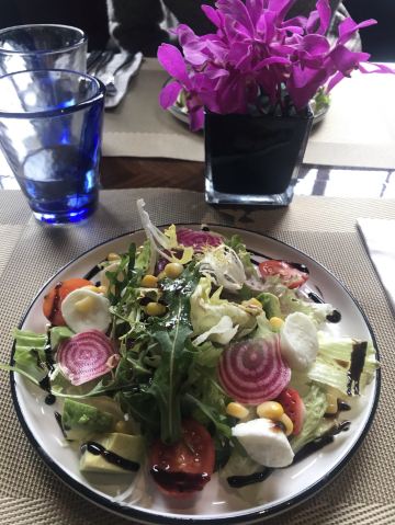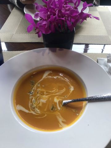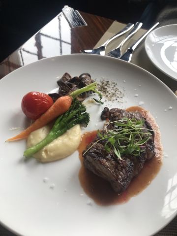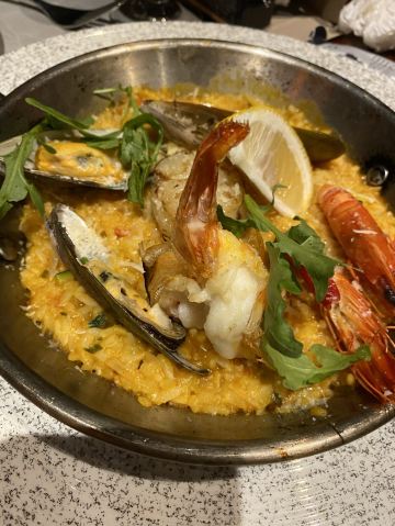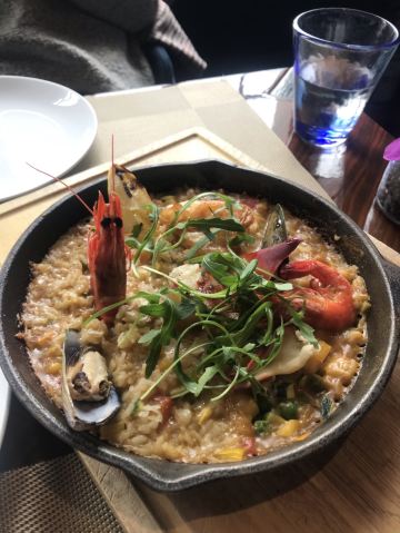 年前闺蜜请我吃的一次午餐,性价比很好,环境也不用说了。我们要了一份牛排和一份海鲜饭想分享一下,牛排虽然不大,倒是厚切的,火候和口感都很不错。海鲜饭中规中矩,量比较大,女生吃不完。牛油果色拉和南瓜汤都挺好吃的,餐后甜品是败笔。提拉米苏充其量只能叫做有点提拉米苏味的蛋糕,不知这样形容对不对,味道怪怪的,没有提拉米苏的滑爽也没有一丁点朗姆酒味。还有一块千层也不好吃,所以这里的甜品就算了。最后餐桌的摆放有点奇怪,靠窗也无法看到外面的风景。