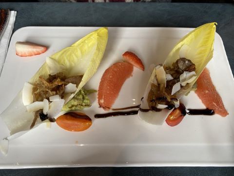 [薄荷]环境:外滩六号,地理位置很不错,提前预定靠窗边的位置外滩的美景如同画一般展现在你的面前,位置之间的间距稍稍有点近,容易影响到旁边桌,他们家没有外面的露台,但可以再窗边拍照,晚上更适合喝点酒还挺有情调的。 团了他们家的双人午餐,有前菜(色拉),两道主食,甜品、饮料,前菜包括了开胃的小菜和一份色拉,开胃小菜有点写意的凌乱感,味道也不错,但色拉有点点小失望,无论是摆盘还是蔬菜的质量稍稍差了点,没有法餐的美感; 两道主食还不错,选了香煎三文鱼和红酒炖牛尾,三文鱼煎得刚刚好,外脆里嫩而且肉质不柴不干,蘸了混合的酱汁酸酸甜甜,还不错;牛尾炖得很烂,肉质比较有嚼劲,关键把酱汁味慢慢炖入了牛肉中,入味好吃; 甜品当中的芝士蛋糕味道挺浓郁的,旁边搭配的小蛋糕有点单调,三个是一个口味的,而且吃了芝士味旁边的小蛋糕明显口感差了点,建议可以换个其他款的搭配下。总体这家外滩景观餐厅,性价比挺高的,推荐!