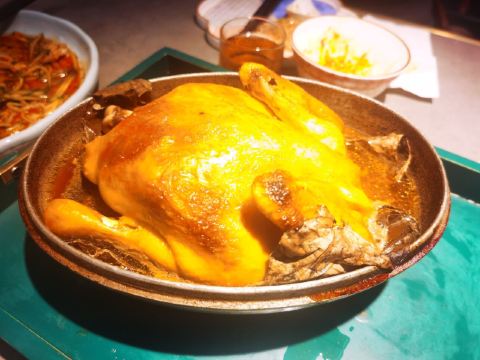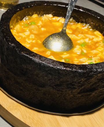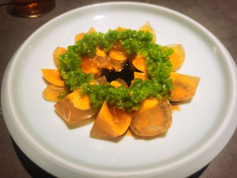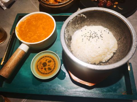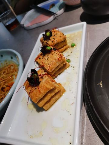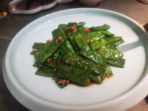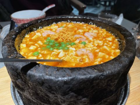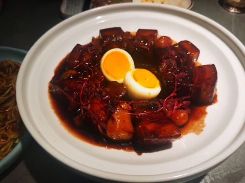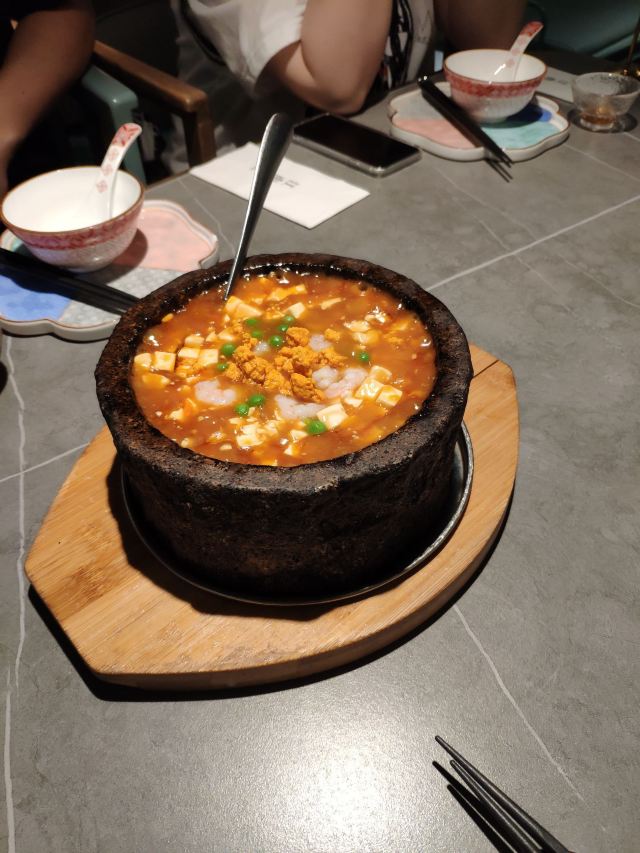 排了两次队没吃上,下午四点就赶来等位才轮到。店堂不大没有包房,大桌也只能坐6人。装修清新淡雅江南韵味。 菜品为杭帮浙菜加以创新融合,大多都是江南名菜佳肴。 鸡丝凉面32元因为到的早先点了一份垫饥,鸡丝、黄瓜丝、豆芽、花生碎、豆瓣辣酱,满满的堆在柔滑筋道的凉面上,拌匀后咸香麻辣停不了口。后又加了一份。 溏心皮蛋22元用的是鸡皮蛋软滑剔透,青椒泥点缀酱汁铺底别样风味。 话梅熟醉虾39元干冰造型仙气飘飘的样子,基围虾不大弹嫩很鲜甜有淡淡的话梅味。 叫花童子鸡98元荷叶衬底带有微香,鸡皮略有焦黄肥润,鸡肉酥松鲜嫩,汤汁油浓咸重。 桂花板栗红烧肉88元五花肉肥糯酥化咸香甜浓,栗子粉酥桂花飘香。 海胆虾仁豆腐48元浓厚的汤汁中有海胆颗粒非常鲜美,豆腐滑嫩细腻虾仁鲜弹。 家烧宽豆角28元豆角煸的很透皱皮,蒜蓉肉末爆香鲜咸味浓。 黑椒牛仔粒68元牛肉粒外脆里嫩带点筋油,黑椒蛮浓重蒜片爆香。 蟹粉捞饭158元蟹粉绵厚勾芡略重,味道鲜香醇浓,拌上莹润软糯的米饭非常美味。 沸腾鱼虾88元鱼片滑嫩、虾仁鲜弹,红油香辣椒麻浓重。 杭州小笼22元小笼皮上部蛮薄的底壳略厚,肉馅紧致酥嫩汤汁鲜润,味道还不错。 整体菜品味道蛮好,食材新鲜,菜式创意也蛮有特色。环境整洁清爽舒适,服务热情亲切及时周到。