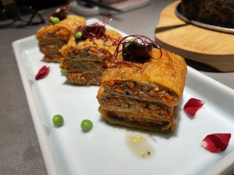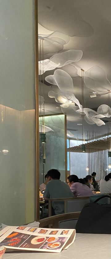 LIMUH1)店面位置: 位于合生汇5楼。 2)店面特色: 杭帮菜馆。 菜品有苏杭招牌菜、江南冷菜、老卤慢炖、点心、甜品、茶饮酒水等。 乾隆鱼头皇、江南鲍鱼红烧肉、西子荷花酥、黑松露素烧鹅、宋嫂鱼羹、果丹皮核桃鹅肝等是招牌菜。 3)用餐体验: 用餐高峰期需要取号等位。等位时有柠檬水和薄荷糖。 店面环境设计源于杭州新西湖十景“云栖竹径”,吊顶虚无缥缈的浮云灯、绿色屏风及餐具等细节设计充满了江南古色古香的韵味。 入座后支持扫码点单。点单后出菜速度尚可。 有免费的九曲红梅桂花茶可饮用,花与茶的结合,入口温和不涩,桂花香气浓郁。 绿豆西米露是冷藏饮品,整体呈乳白色,口感比较甜糯粘稠,里面有一些西米,略带些绿豆的清香味。 12元一位的宋嫂鱼羹用盅盛放,下有火一直保温,鱼羹里有火腿丝、金针菇、竹笋末等,酸酸咸咸,比较鲜,胡椒味调味浓。 46元一份的海胆虾仁豆腐里面的海胆和虾的含量不多,豆腐切的非常细小,口感比较嫩,浸满了鲜香的汤汁,比较下饭。 39元一份的江南全家福里面有鱼饼、西兰花、肉皮、鹌鹑蛋、虾仁、粉丝、娃娃菜等,汤底比较咸鲜。 15元一份的杭州春卷有5根,有醋碟可蘸取,趁热吃比较香脆。 米饭3元一碗。 4)餐饮价格: 人均80元左右。