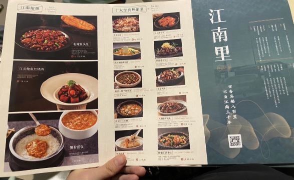 蟹粉捞饭,黄鱼烧手作年糕,油爆虾,桂花板栗红烧肉,海胆豆腐,宋嫂鱼羹,沸腾鱼虾,杭椒石锅牛蛙,鸡丝凉面,黑椒牛肉粒