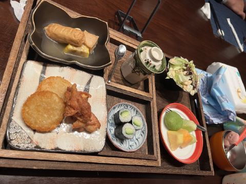 烤猪排定食,和牛寿喜锅,乌冬面,鳗鱼饭定食,红龙虾配海胆,刺身拼盘,乌冬寿喜锅,牛肉温泉玉子饭定食,抹茶冰淇淋,鹅肝寿司
