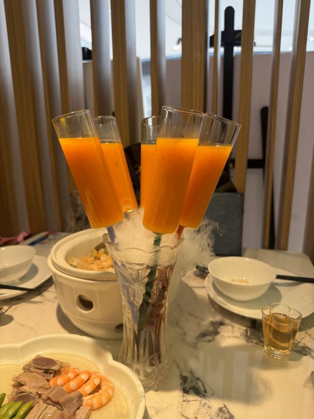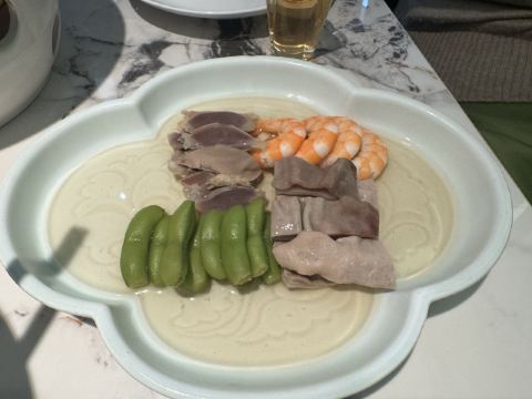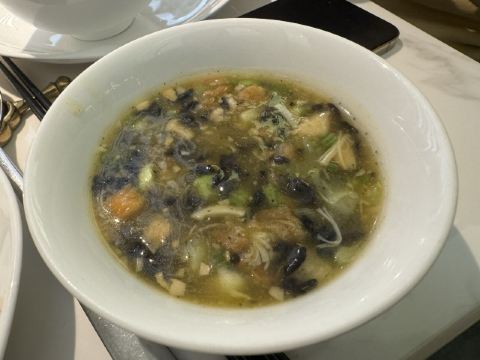 终于全家一起来了,中午来的更早些,十一点不到,换到了另一个房间,这时人少还可以拍些照片。园林式曲径通幽的布置,私密性比较好,但环境非常难拍照,很难避开其他客人还有服务生。要了松鼠桂鱼,特意关照少放糖,服务生有点惊讶,总算端上来还是蛮惊艳,厨师也确实糖放少些。被关照在八分钟内鱼的口感最好,确实如此。不过,最后打包带走的砂锅咸肉菜饭竟然也有些甜味,看来这确实是家无锡菜馆,和苏州园林没啥关系。还有看到人人拿了杯南瓜汁喝,不知什么讲究。价格适中,服务态度好,所以生意也挺好,离开时发现外面已在排队叫号。没有洗手间,在商场内比较远的地方。扫码小程序点单,下单后要注意检查是不是自动给添上一包餐巾纸,这个完全没必要。万一支付了,可以要求餐厅退款。吃了两次,重要品种都试过了,过甜,家人应该以后不会再来了,特别是小年轻不易接受这比较传统的口味