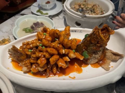 Monimika☘️周末来福士走一波。 ☘️活杀响油鳝糊:响油鳝糊表面撒着翠绿的葱花与金黄蒜末。夹一筷入口,鳝肉细嫩弹牙,咸鲜中带着微甜的酱汁,胡椒的辛香若隐若现。 ☘️碧螺春清炒白虾仁:虾仁莹白如玉,滑嫩似豆腐,却裹着淡淡的茶香,清新之气直抵喉间。盘中不见多余点缀,唯有白绿相间,食之如沐春风。 ☘️荠菜黄鱼小笼包:薄如蝉翼的面皮下,藏着荠菜的清香与黄鱼的鲜嫩。咬开瞬间,汤汁涌出,荠菜的野趣与鱼肉的细腻在口中交融,彼此成全。 ☘️松鼠桂鱼:招牌硬菜,色泽诱人,鱼肉外酥里嫩,筷子轻戳即碎,内里保持着雪白的鲜嫩。 ☘️价格偏贵,但服务满分💯,下次还会再来。