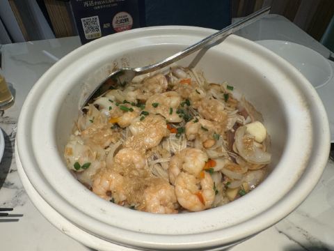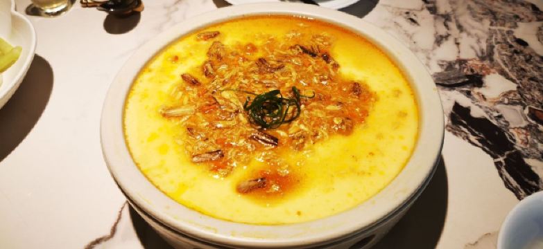 食神牛苏锡口味的餐馆节假日生意特别好,店铺蛮大装修布置的很诗情画意,接待很热情安排就坐倒上茶水,茶水是碧螺春清香淡雅。 打卡收藏送酒酿圆子酒酿甜汤很绵绸,各色馅料的小圆子滑糯可口。 苏式香糟四味58元糟香清口酥润鲜咸。 九年百合焗虾仁88元蒜香浓郁百合酥香甜润,虾仁鲜弹柔嫩。 松鼠桂鱼238元他家的招牌菜几乎是每桌必点,刀花造型还不错,鱼炸的香酥松脆,酱汁酸酸甜甜增进食欲。 海鲜乌米泡饭58元海鲜食材挺丰富的,油香浓郁绵厚鲜美。 苏式红烧羊肉168元羊肉酥松肥嫩微甜不膻,萝卜酥透水润。 现在点羊肉还送南瓜汁造型别致,浓厚淡甜蛮养生的里面还有红豆爆珠。 鸡头米奶冻18元滑嫩鲜甜。桂花乌米汁19元稠厚香浓。 菜式很有江南特色,环境还可以但是角落的位子有点挤,服务态度蛮好不过生意好比较忙响应速度有些慢,最后赠送的水果也没有上来。