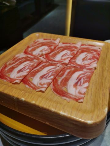 要吃当然是和牛,219的。 双拼锅底,金汤还是蛮辣的,涮菜味道一般,还是寿喜锅低味道好。 海鲜一般般,要了个拼盘尝了一下。 M8-9的牛肉最赞,口感不干不柴,吃了一份后又要了三盘,其他牛肉相对无论是口感还是份量都差多了,个人觉得牛肉可以只吃M8-9。 羊肉一般。 生巧好甜。 生打椰和可尔必思,杨梅汁都很赞,冰箱里的果汁一般。 冰激凌不错,水果都没吃,光顾吃肉了。 我们还好基本都吃完了,也没有海点。