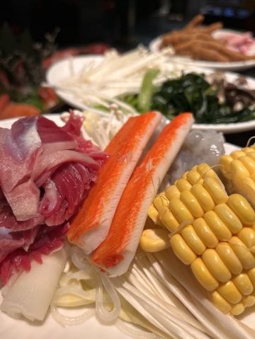 牛舌,金砖鹅肝三重奏,雪花和牛上脑畅吃,大红袍鲜奶茶畅饮,鱼籽鲜虾滑,焦糖布丁,招牌寿喜锅,M8~9和牛,海鲜拼盘,极上刺身拼盘,牛乳生巧,鲍螺片,男友拨的虾