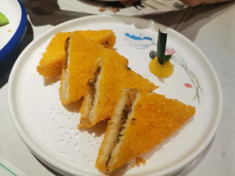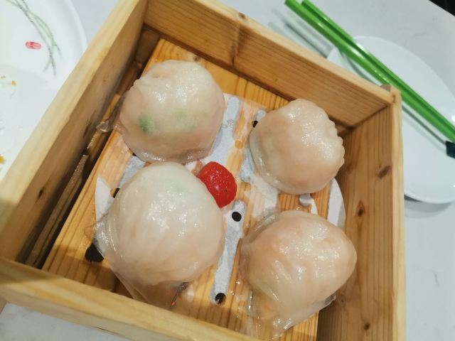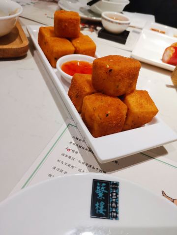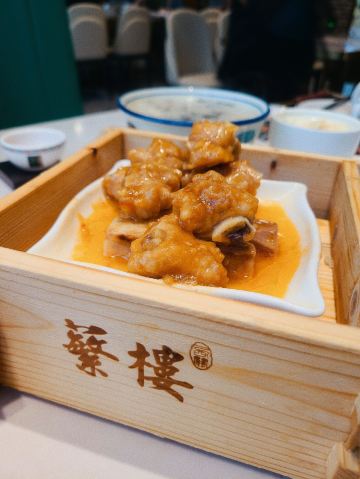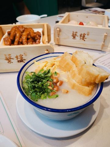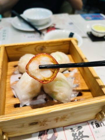 amydog2021-9-2 为了开学……🍻 被逼疯了的射手小分队,2个月+之后终于重新扬帆继续浪了😅 金主墙推蘩楼,说自己去过好几次了,很不错(其实主要离他近🙄,算了谁买单谁说了算🤪) 工作日11点20,卡座都已经坐满了(金主点名要坐卡座),卡座就是靠着边上墙的一圈,私密性可以好很多,散席就是抛在中间的桌子,间距有点局促 【服务】找抢了一张散席,然后跟服务生说反正人还没到齐,如果有卡座麻烦换一张,大概十分钟之后有一张卡座买单走人了,真棒🥳 【口味】 |蘩楼露笋虾饺皇^35,一般茶楼里这个镇店之饺都不会出错,当然这也是考核粤式茶楼最重要的一个指标,蘩楼属于无功无过吧,鲜虾新鲜 |广州荔湾艇仔粥^35,这个非常喜欢,鲜美无比却又清清爽爽 |老火菜干猪骨粥^32,怪怪的味道有点咸,整个口感都很重,而且因为有菜干整个粥的颜色都污糟糟好难看 |XO酱山椒蒸凤爪^35,真的必须再次吼一声,避风塘的凤爪真的是天花板😂哪怕速冻小包装买回来叮一下都还是天花板啊😅 |香脆明虾红米肠^30,小份的5段,真的很一般啊,金主说里面有油条好好吃🤕 |顺德大良双奶皮^30,这个可以,奶很厚实,但也就是双皮奶该有的样子鸭 【环境】百盛四楼,面积非常大,坐满真的有点吵,不过还算好,坐的那个卡座不在中央区域 卡座茶位费8米,金主太客气菜点多了,321,多点了1-2个,应该300以内能搞定😅