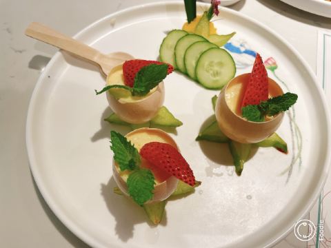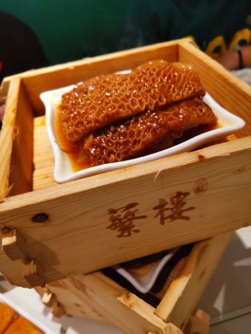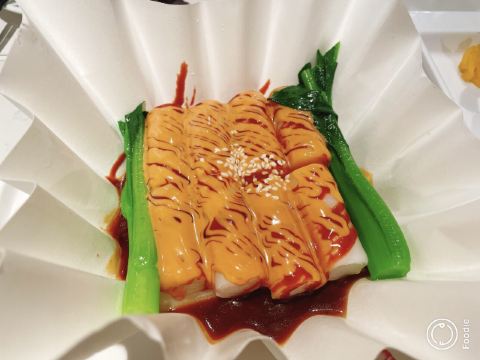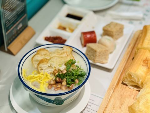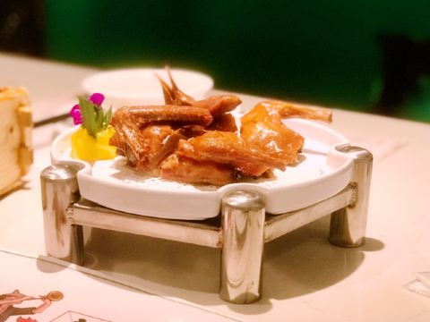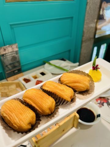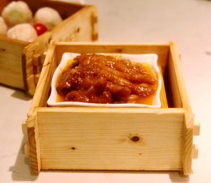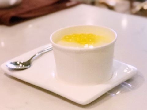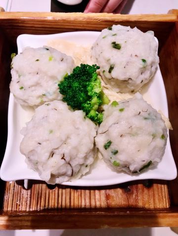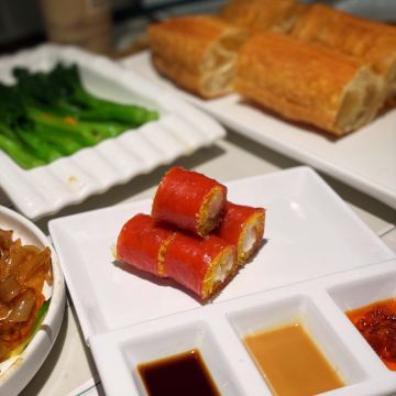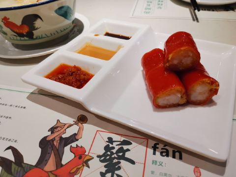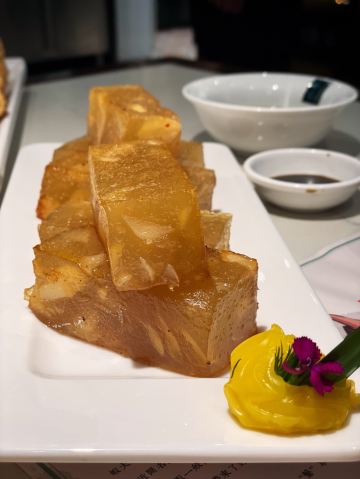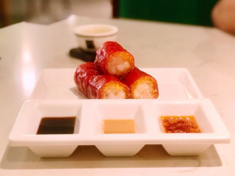 二刷蘩楼淮海百盛店,除了必点的脆皮乳鸽和蒸凤爪、铁观音茶一壶,这次尝试点了几个以前没有点过的菜点:鲍汁明虾腐皮卷、特色鲮鱼丸。服务员介绍网上他家有打卡收藏赠送豆花活动,于是照做,得高颜值的每日鲜做豆花各一份。 感觉金奖脆皮乳鸽和XO酱山椒蒸凤爪依旧美味,新点的鲮鱼丸和每日鲜做豆花也是令人惊喜,鲮鱼丸入口嫩滑又结实有弹性,豆花幼嫩顺滑,入口即化,撒了柠檬黄色的透明珍珠,颜值也是极高!还有鲍汁明虾腐皮卷,小伙伴的最爱,明虾和菌菇相遇,也是鲜上加鲜……
