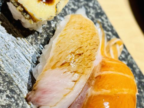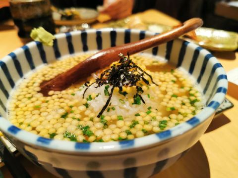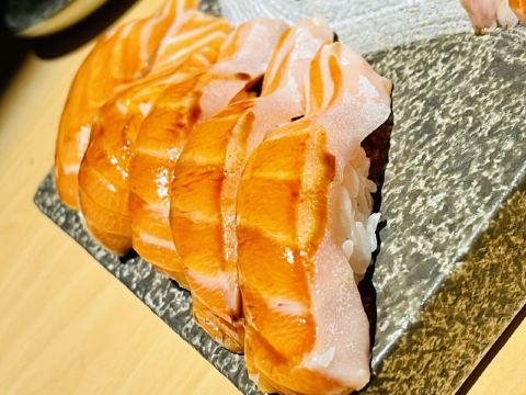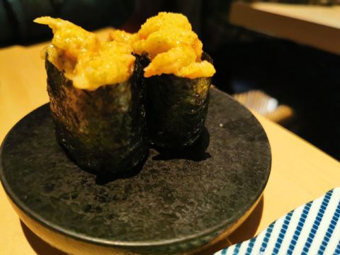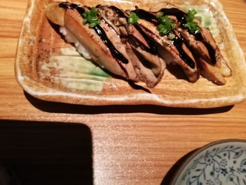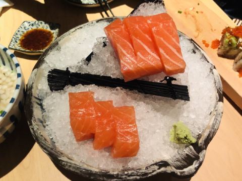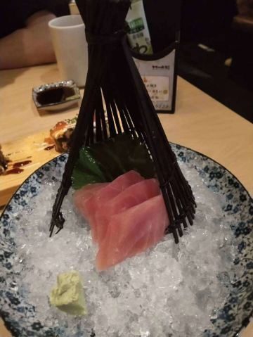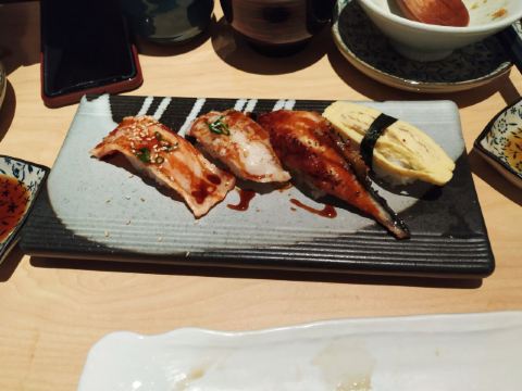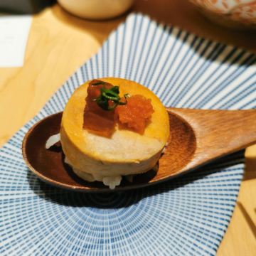 到玉佛寺里面去拜太岁,那么顺便晚上就在附近吃饭吧,打车过来还蛮方便的,来的比较早,所以预订房了一下没有排队,一般来说就给一个多小时吃饭的时间,先预约一下再说。 环境是特别简约啊,空间特别狭小,坐起来不是特别舒服。服务就是比较快,也算比较利索吧。点的就是几个招牌菜,吃下来寿司还不错,各种寿司都点了一下,鳗鱼寿司和帆立贝寿司还比较好吃,炙烤过的和牛寿司也蛮好吃滴。 三文鱼和牡丹虾还不错,嗯,三文鱼都是鱼腩部位,所以吃口还可以的。 茶泡饭和乌冬面一般般,面量还是大的,但是特别特别清淡,是没什么味道。 一款温泉蛋温泉蛋里面放了山药丝,还蛮脆的,还带有一点酸酸的,特别开胃,这款我蛮喜欢的。 性价比比较高,就是吃饭要比较速度。