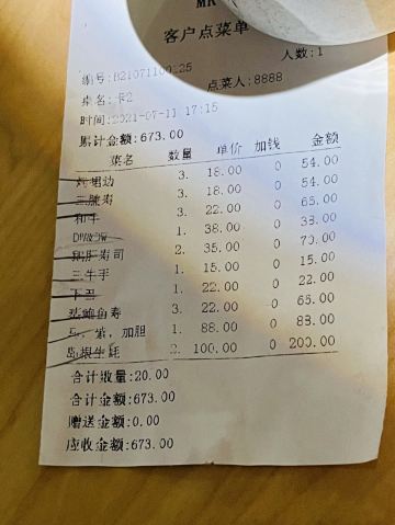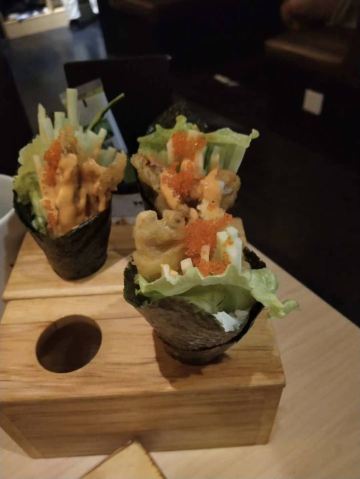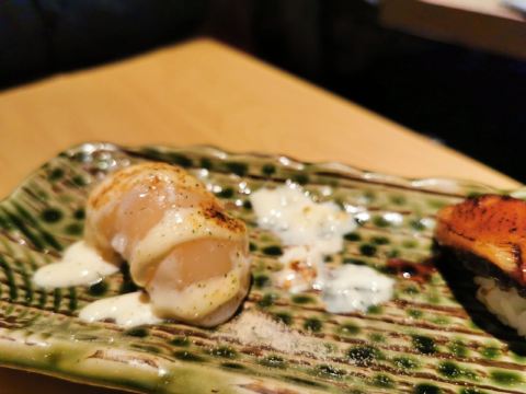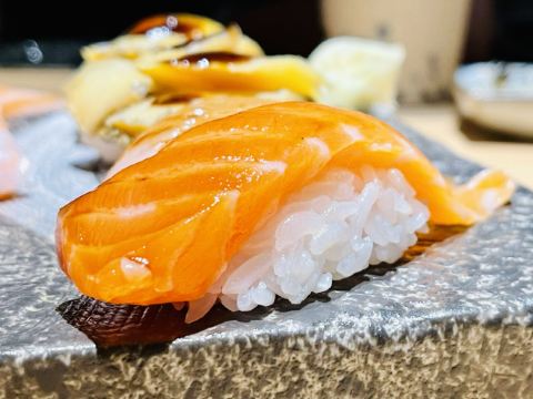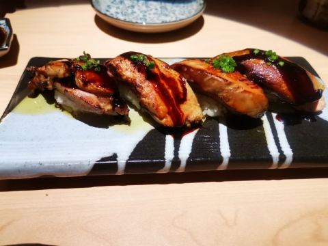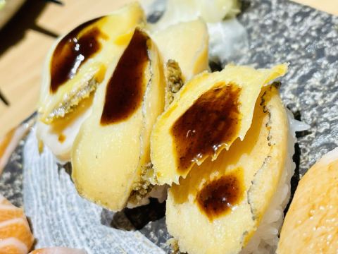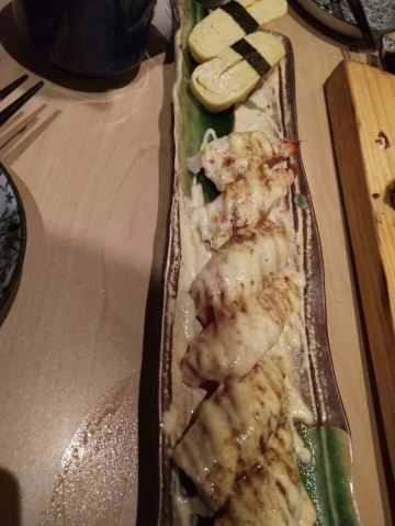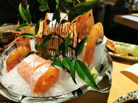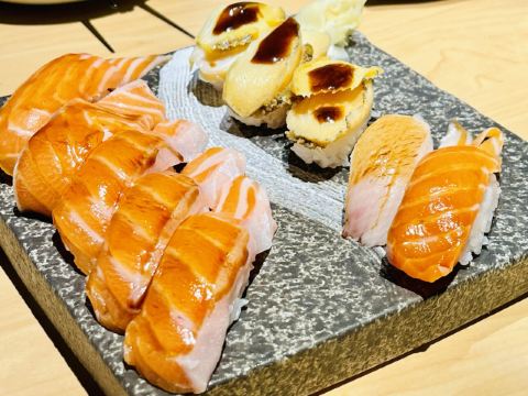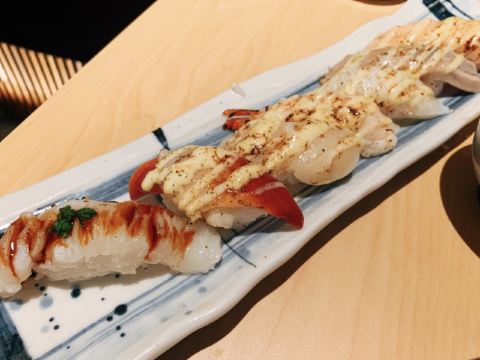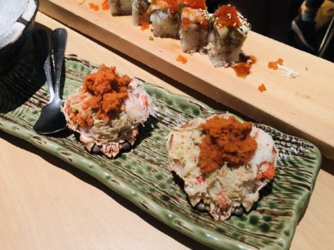 招牌鹅肝寿司,鳗鱼饭中,三文鱼腩,香箱蟹,帝王蟹肉凯撒色拉,甜虾刺,和牛朴叶烧,芥末章鱼,活牡丹虾,焦糖布丁,刺身拼盘,北极贝刺身,蟹斗,牛肉饭,暖暖的天妇罗卷,三文鱼刺身,牛排饭,鲜虾牛油果卷,豆腐,炙七件