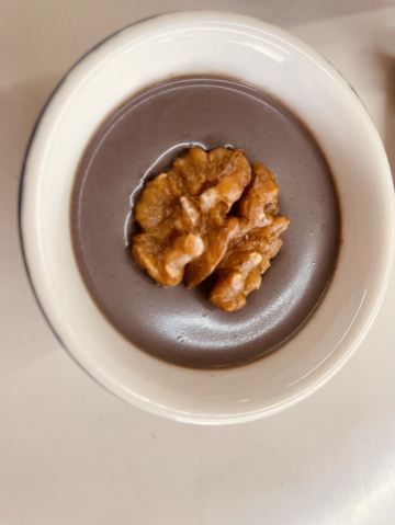 蔡嘉甜品太阳宫店~叫了外送~ 奶冻巧克力,外层巧克力味还挺浓郁的,里面奶冻吃起来一般,有橙丝,但是有点违和。 芝麻核桃布丁,核桃是不脆的,是受潮的,芝麻布丁也一般般~