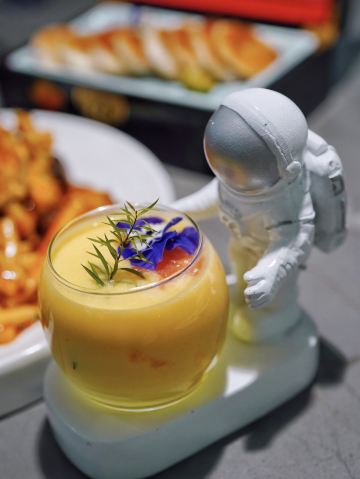 不愧是你,来了就不会后悔。 网红打卡天花板,1000万打造的星际空间店。 口味:西餐,中餐总有一款是你喜欢的,我们今日选的菜没有踩雷。好吃 环境:3层。宽敞明亮。超级出片。服务:周到,热情 性价比:好吃还打包了两个菜。 沸腾波龙 :香香辣辣,这一桌最好吃的菜。 实验中的水果茶;招牌玻璃乳鸽;冲浪鲍鱼泡饭;芒芒星海;彼得兔庄园;荷金酱江鳗;酸奶布丁;坚果蔬菜沙拉 口味: 口味: