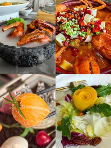 炙烤牛小排,原创肉汁荔浦香芋,星空油条虾,水货佛跳墙,鹅肝面包塔,榴莲披萨
