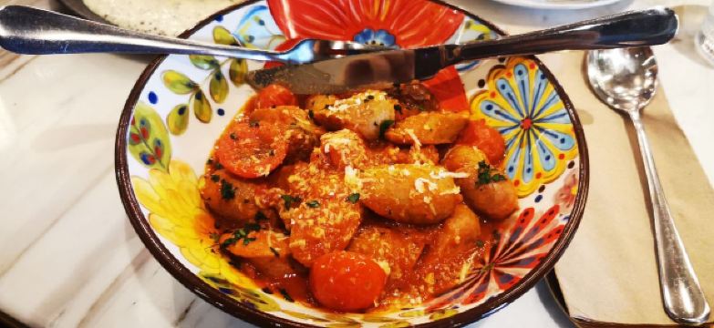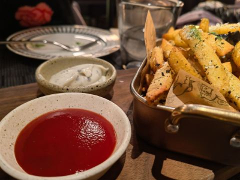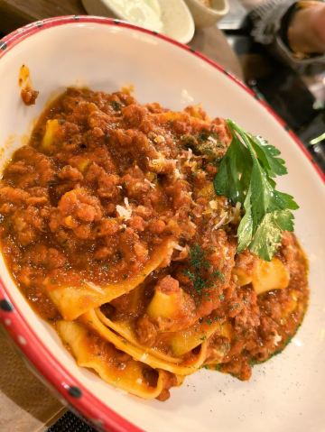 泡泡龙他爸这个位置,原来是在新天地经营好多年,后来越来越不怎么样的宝莱纳。春节的时候,一次吃过午饭经过,发现新开了一家意大利餐厅,探头张望了一下,却没想到一直要等大半年才有机会来尝鲜。还好,还开着,秋日暖阳,餐厅的落地门窗全部打开,室内外联成一体。看了餐单了解这算是威尼斯菜,典型的意大利餐馆风格,适合关系密切的朋友,桌子不大,要有心理准备。去二楼的扶梯灯光设计不错,参观二楼一次,沙发座,桌椅比一楼宽敞,但没有了那种亲密氛围。菜单上品种非常丰富,量不算很大,价格尚属正常水准,有折扣券可以利用,第一次去要了个菌菇烩饭,家里领导要了炸海鲜和烤章鱼腿,口味不错