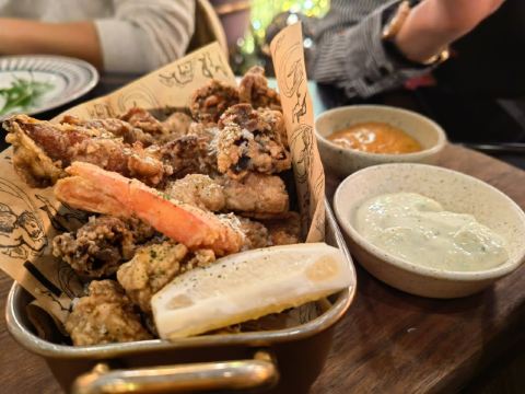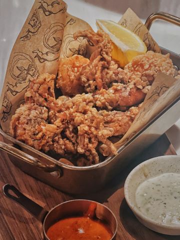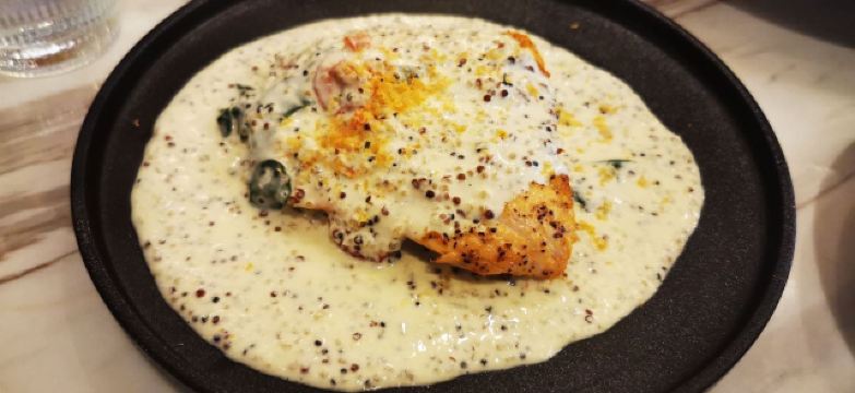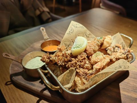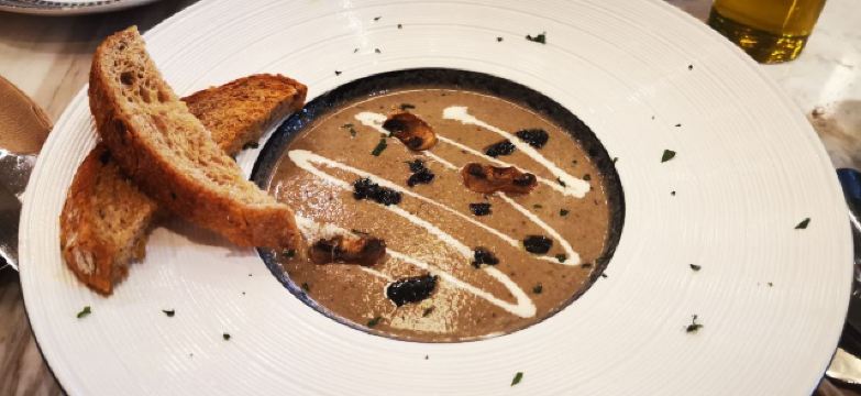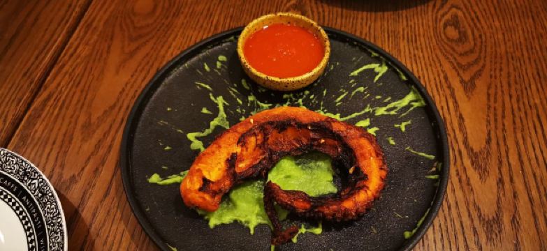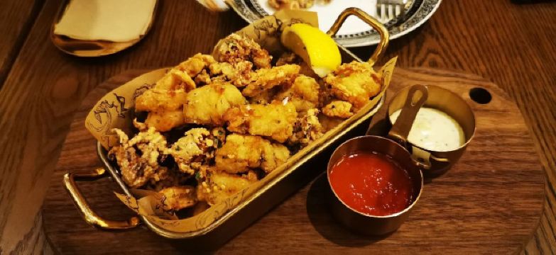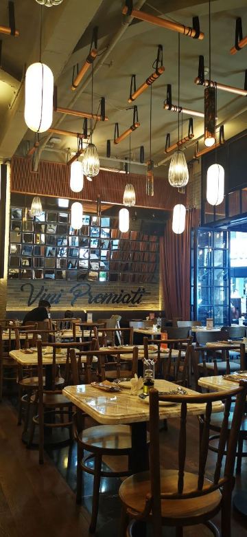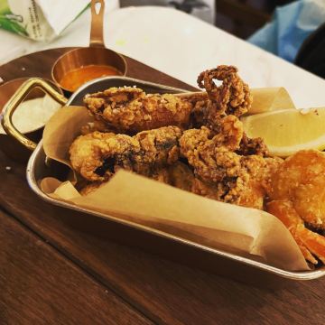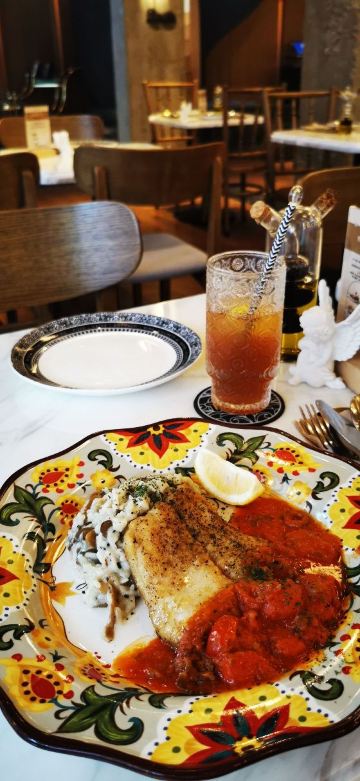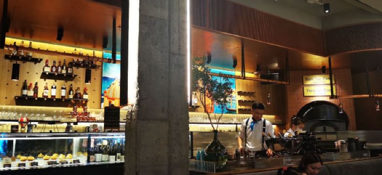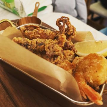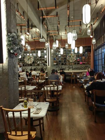 这个位置,原来是在新天地经营好多年,后来越来越不怎么样的宝莱纳。春节的时候,一次吃过午饭经过,发现新开了一家意大利餐厅,探头张望了一下,却没想到一直要等大半年才有机会来尝鲜。还好,还开着,秋日暖阳,餐厅的落地门窗全部打开,室内外联成一体。看了餐单了解这算是威尼斯菜,典型的意大利餐馆风格,适合关系密切的朋友,桌子不大,要有心理准备。去二楼的扶梯灯光设计不错,参观二楼一次,沙发座,桌椅比一楼宽敞,但没有了那种亲密氛围。菜单上品种非常丰富,量不算很大,价格尚属正常水准,有折扣券可以利用,第一次去要了个菌菇烩饭,家里领导要了炸海鲜和烤章鱼腿,口味不错