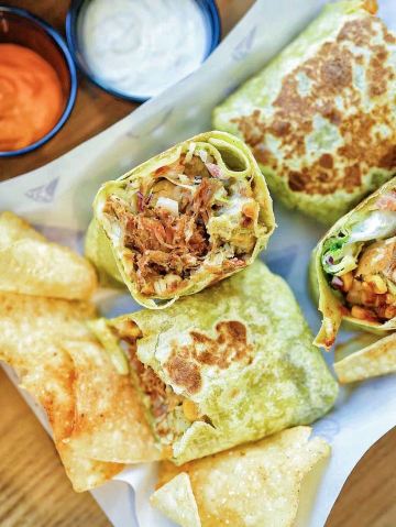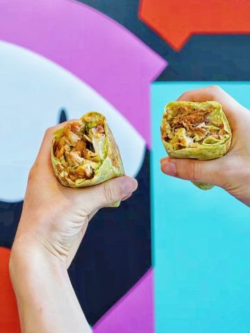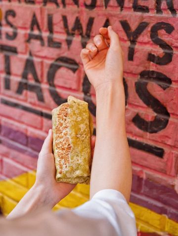 一解封就想吃的餐厅有哪家⁉️第1个映入我脑海的就是墨西哥国民餐厅TacoBell‼️听说最近又有新品手腕卷上新大“爆”料⚠️趁着解封立马带着小伙伴来打卡🆒 TacoBell新品🌯手腕卷🌯真的是分量惊人,满满都是料‼️那外形的确名副其实,竟然比手腕还要粗‼️纯天然的菠菜饼皮,低卡营养无负担,搭配灵魂莎莎酱,包裹住满满配料,每一口都是幸福呀🥫 🍗烤鸡蔬谷手腕卷🍗 现烤的鸡腿搭配多色混合沙拉蔬菜,加上酸甜奶香,牛油果风味牧场酱和墨西哥独特的灵魂莎莎酱!清新酸甜略带奶香,将整体层次感又提升了一个level📈 🍖香烤梅花猪肉手腕卷🍖 肉眼可见的大个,料hin足,嘴小的朋友一口真的吃不下去😆新鲜整块梅花肉先腌后烤🔥而成,切成小块儿再和玉米饼、蔬菜、牛油果、风味酸奶酱组合在一起,口味清新香浓,猪肉酥嫩有嚼劲🔛 ✨两款手腕卷我都爱,吃完之后完全不会觉得很腻,刚刚好的满足感~目前还不能堂食哟,不过在阳光下品尝美食,也增添了一份野餐的情趣🥡 🌮Taco Bell 塔可贝尔(万源城店) 📍万源路575弄2号 🚇地铁12号线顾戴路站3号口