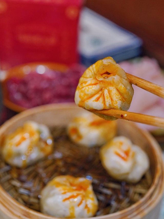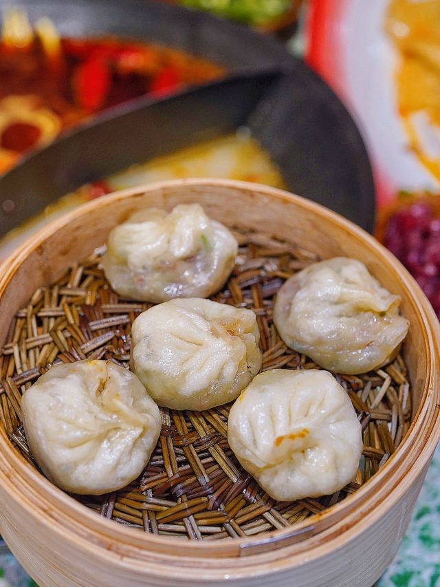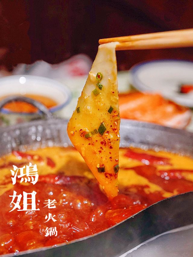 吃饭就别叫我了鸿姐不愧是人间烟火气的收集者,生活如沸坐等开涮🥢浓浓的市井风装修超级带感,80年代竹筐和碗碟,仿佛穿越到上世纪的重庆街头。 🌶️茯苓酱肉土包子🌶️ 万物皆可涮!现点现蒸的火锅包子,既可以直接吃,也可以浇一勺辣油,还可以丢进锅里煮♨️咕嘟咕嘟挂满红油,煮完以后都不散,牛油香夹杂着肉香,一口一个美滋滋~ 🍳鸿姐炸蛋🍳 这恐怕是人间小巨蛋吧,竟然比我脸还要大 ,四个鸡蛋才能炸出这一大盘,金黄灿灿的炸蛋里包裹着爽脆贡菜,嘎嘣脆的口感就像在你舌尖炸开了花,绝💯 🫓手工苕皮🫓 跟炸蛋一样,依然是XXXL号,Q弹软糯的手工苕皮,让人很难不喜欢,今天就来解锁它的N种吃法,不管你是卷着吃,还是涮着吃,都别有一番风味哟~ 🥔8秒脆土豆丝🥔 涮完8秒的土豆丝有点惊艳到我,酥脆中带着一丝软糯,吸饱汤汁格外入味,竟然有种嗦面的快感,讲真,拿肉来我都不换好嘛‼️ 吃饱喝足摸一摸涨鼓鼓的肚几,卡路里又充值成功✅今日份的快乐是鸿姐给的❣️
