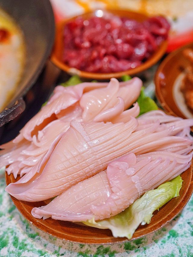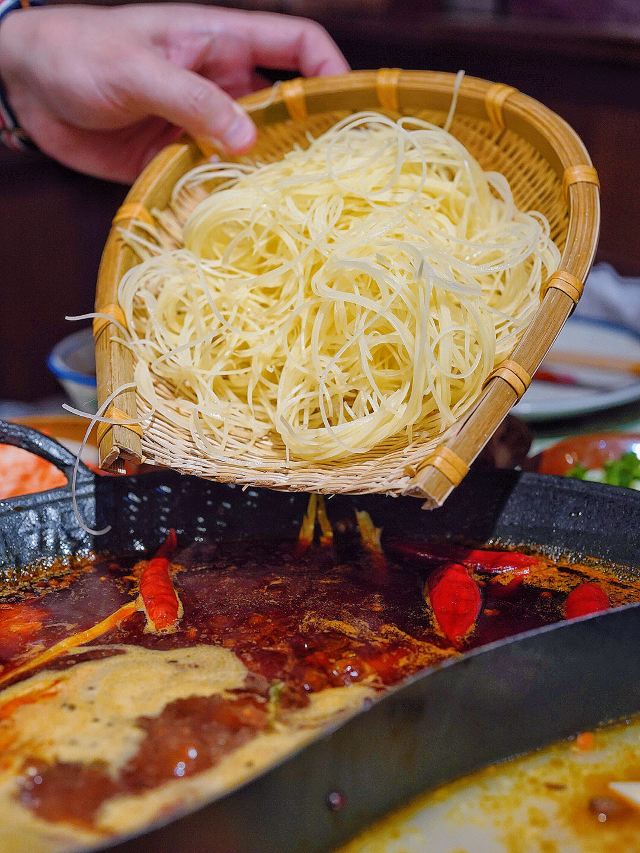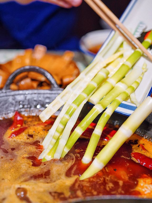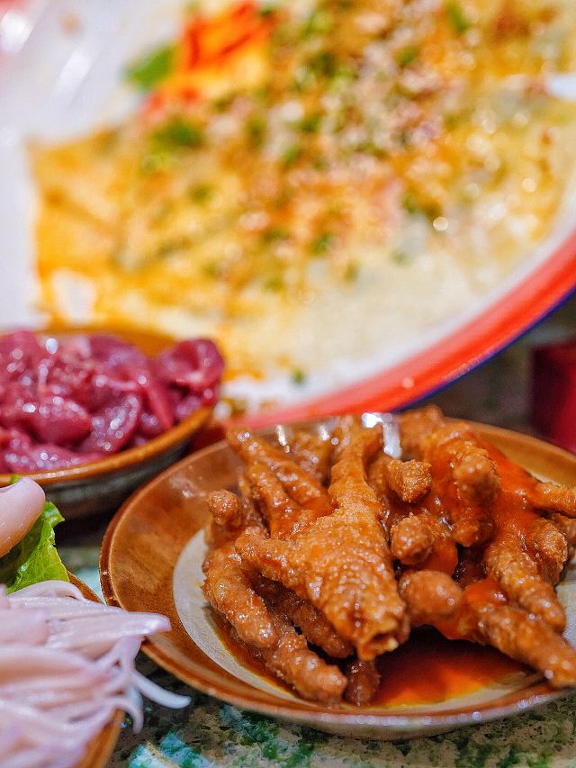 鸿姐不愧是人间烟火气的收集者,生活如沸坐等开涮🥢浓浓的市井风装修超级带感,80年代竹筐和碗碟,仿佛穿越到上世纪的重庆街头。 🌶️茯苓酱肉土包子🌶️ 万物皆可涮!现点现蒸的火锅包子,既可以直接吃,也可以浇一勺辣油,还可以丢进锅里煮♨️咕嘟咕嘟挂满红油,煮完以后都不散,牛油香夹杂着肉香,一口一个美滋滋~ 🍳鸿姐炸蛋🍳 这恐怕是人间小巨蛋吧,竟然比我脸还要大 ,四个鸡蛋才能炸出这一大盘,金黄灿灿的炸蛋里包裹着爽脆贡菜,嘎嘣脆的口感就像在你舌尖炸开了花,绝💯 🫓手工苕皮🫓 跟炸蛋一样,依然是XXXL号,Q弹软糯的手工苕皮,让人很难不喜欢,今天就来解锁它的N种吃法,不管你是卷着吃,还是涮着吃,都别有一番风味哟~ 🥔8秒脆土豆丝🥔 涮完8秒的土豆丝有点惊艳到我,酥脆中带着一丝软糯,吸饱汤汁格外入味,竟然有种嗦面的快感,讲真,拿肉来我都不换好嘛‼️ 吃饱喝足摸一摸涨鼓鼓的肚几,卡路里又充值成功✅今日份的快乐是鸿姐给的❣️
