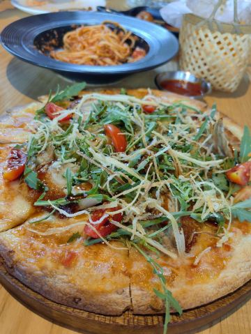 花园炸薯条,花园秘制烤鸡翅,花园重芝士披萨,黑松露火腿披萨,花园香煎菲力牛排,姜黄拿铁