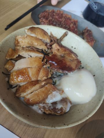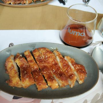 这家店风格是日料与西餐融合吧,既是餐厅,也是酒吧,还有阳台座位,蛮有情调的。炸猪排外层脆脆的,蜜炙的口感,但里面的猪肉略柴。鸡腿鹅肝饭是个套餐,性价比挺高的。厚厚的一块鹅肝,没有腥味,显示出厨师的水平,鸡腿也是脆脆的表皮,里面略淡,总体还不错。红豆沙甜甜的。