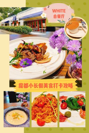 秋趣#WHITE白餐厅(创智天地大学路店) 地址:智星路95号(创智天地企业中心3号楼1楼) 交通:地铁10号线江湾体育场站10号口出步行5分钟 疫情未了,不聚集,不聚餐。但春光明媚,到户外走走,享受一下独餐的悠闲未尝不可。所以,个人觉得吃西餐很能满足这份需求,因为相对来说,西餐推崇分食,量不是很大,也有利于丰富餐品内容。 【前点】面包味道不错,松而脆,尝一块点饥很到位。 【蘑菇浓汤】 喜欢,总觉得西餐的汤份量恰到好处,不多不少,可谓浅尝辄止,让你留着胃口吃大餐。 【前菜】伊比利亚黑猪火腿,摆盘讲究,薄薄的火腿肉很鲜,配上蔬叶满口清香。 【主餐】烤鹅肝牛排,厚厚的鹅肝有点肥,牛排很嫩,考味浓郁,酱料可口,吃起来蛮过瘾。当然少不了【红酒】佐餐,更添了兴致。 【甜点】提拉米苏,颜值很高,其实已经饱了,但实在挡不住的诱惑,还是把这道层次分明,甜味十足的甜品多灭了。 这家餐厅已经是第二次去了,喜欢那里的环境,服务的规范热情。