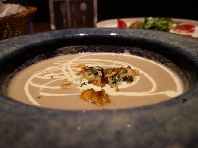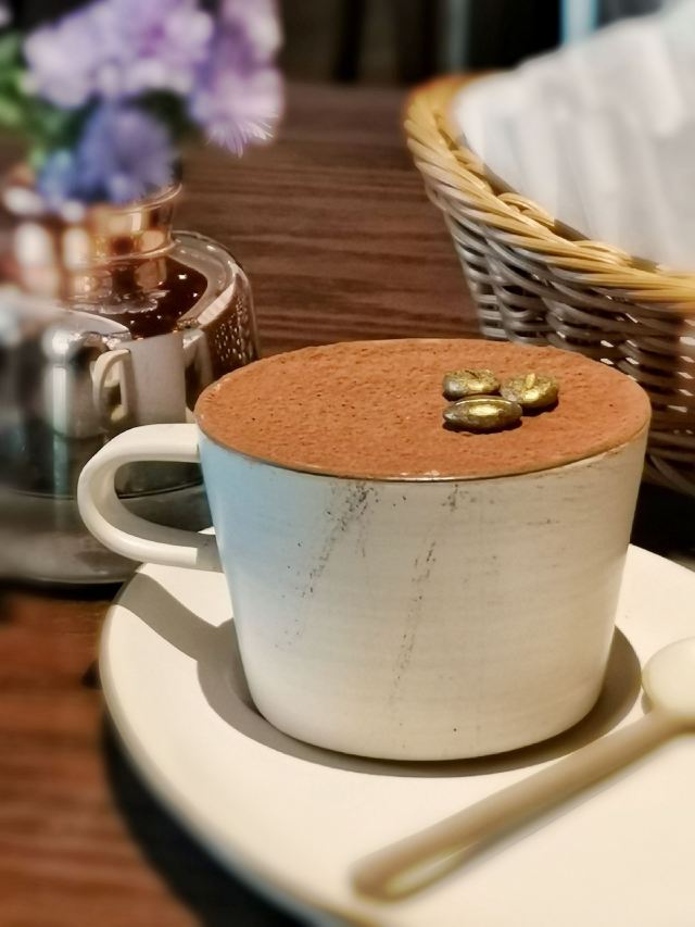 ma****ly记忆中每次来到白餐厅,都是在晚市的时候。从热闹又璀璨的大学路上左拐进入智星路,并不远离喧闹,却独有一份静谧。 于是在周末的晚上,在白餐厅里小酌一杯红酒,享受一份鹅肝牛排套餐。 餐厅自制餐前面包 面包入口柔软,带着淡淡的茴香味道,搭配着橄榄油和黑醋两种蘸酱,一淡一浓的两种风味。 伊比利亚火腿 火腿咸香,越咀嚼那咸香的味道在口中弥漫的越深。或者用火腿包裹着芝麻菜吃,味道中又增加了芝麻的香味。 蘑菇浓汤 口感香浓,颗粒感适中。 鹅肝牛排 鹅肝肥而不腻,裹着的樱桃酱让鹅肝口感清甜,这样再来两块我也不回拒绝的。 牛排是菲力,选了5分熟,牛肉恰到好处的柔嫩,淋的黑椒汁滋味正好,完全不需要其他的调料了。 牛排下还垫着煎杏鲍菇。 提拉米苏 提拉米苏装在杯子里,上面铺着一层巧克力粉,尤其是上面还点缀着三颗咖啡豆形状的巧克力豆,造型像极了一杯咖啡。