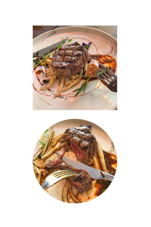 ro****rsWHITE白餐厅在大学路创智天地,从五角场走过来不远,这一带感觉文艺范比较足,白餐厅门口比较低调,星星点点的小雏菊更添清新~ 一个单人套餐包括餐前面包,伊比利亚火腿,蘑菇浓汤,鹅肝牛排,提拉米苏,红酒很是满足! 白餐厅自制餐前面包,有点像披萨饼边的自制面包,很有嚼劲,不过没给橄榄油和黑醋汁,原味吃吃也不错的~ 西班牙进口24个月伊比利亚黑猪火腿,火腿品质很好鲜香好味,配有芝麻菜小番茄绿橄榄一起吃不会腻,配红酒也棒棒~ 蘑菇浓汤,非常浓郁的蘑菇浓汤味儿,感觉有点太正宗了,量很足很有饱腹感,趁热好吃~ 鹅肝牛排相比一般牛排更诱人,7分熟,很到位,鹅肝香嫩牛排紧实,切下牛排和鹅肝一起入口的感觉好美妙,口感超级棒! 提拉米苏,杯状的提拉米苏,挖了一口真的有被惊艳到,超级厚实浓郁的味道,太好吃了,不过杯底的蛋糕是湿润的有点意外。 好肉配好酒,一杯红酒佐一餐美味!