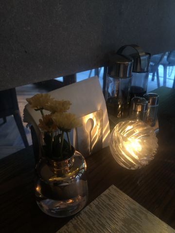 tudesign🌼环境:店面很大,门前的一排小黄花映衬着白餐厅蓝色的遮阳篷,蓝黄相对的颜色很显眼,餐厅面积比较宽敞舒适,餐桌很多,靠墙沙发座也比较舒服,每桌都有小鲜花,很有春天的气息,整体环境低调雅致。 💁服务:服务员都很亲切客气,进店入座,会有免洗消毒液提供 「白餐厅自制餐前面包」感觉面包有点老,不是很香。这家的餐前面包不是配黄油,店家建议配黑醋和橄榄油拌着食用,还有专门文字过程贴着吃法,比较特别。 「西班牙进口24个月伊比利亚黑猪火腿」口感略咸,配合着芝麻叶食用感觉不错。 「提拉米苏」喜欢最上层香浓的感觉,下层蛋糕浸润在红酒里有些湿润的口感不是最喜欢。 「每日例汤」口感还是比较浓郁的 「鹅肝牛排」这家白餐厅的特色牛排配上一大块鹅肝在牛排上,味道不错,摆盘也漂亮, 「意大利面」和闺蜜一起用餐,面的量比较大,也比较入味,就是面条硬了一些。 「柠檬可乐」店家提供了玻璃杯和柠檬片配可乐。 📍地址:智星路95号(创智天地企业中心3号楼1楼)工商银行后面 🚇交通:地铁10号线江湾体育场站10号口步行6分钟