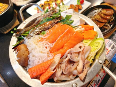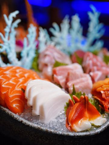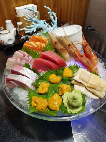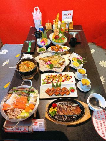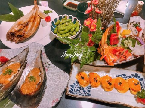 烤帝王蟹脚,海胆刺身,上等牛舌,三文鱼刺身,活海螺刺身份,红毛蟹火锅,北极贝刺身,超厚三文鱼,韩风大虾球,松叶蟹火锅,鳌虾,蓝鳍金枪鱼大腹,生蚝刺身,特大海胆,牡丹虾,红酒煎鹅肝,甜虾,小青龙刺身,豪华刺身拼盘,精选雪花和牛