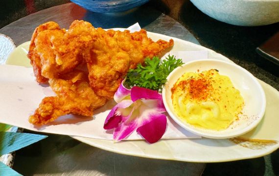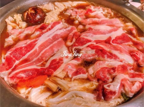 Toshima今天又是享受美食的快乐时刻,小美女请我吃日料,咱们紫赶慢赶在中午1点前到店。 环境:要走到宏晖国际广场后面才会发现丰岛的身姿,独栋大楼的二楼从小门进入打开一扇类似安全门才能进入餐厅,一下子感染在和风的熏陶下,壁画、红灯笼还有榻榻米的隔间、包房,每一处细节都透露着古典的风雅和情趣,坐在沙发座上和朋友品尝着味觉大餐真的惬意。 服务:店员热情有礼,服务规范,我们来的晚,餐品多吃到店里午休员工开始用餐我们还没吃完,但只要招呼一下马上有店员过来服务。两个女生眼大胃小,很多菜品都需要打包,海鲜火锅我很喜欢,但吃的汤汁见底,上海老板是个健谈热情的人,很爽快的叫员工帮我拿来一大袋新鲜汤底,回家加热后家人都说好吃。 【豪华刺身拼盘】鏊虾、北极贝、金***鱼、海胆、鲷鱼刺身来自日式料理的细腻与匠心~色彩的搭配摆盘和生鱼的鲜美让味蕾得了满足。 【盐烤大黄鱼一夜干】一整条大黄鱼烤的皮脆肉嫩,香的很。 【三文鱼刺身】厚切三文鱼肥美味甜,爱了。 【红酒煎鹅肝】有三层,第一层酸甜口鲜黄桃片,第二层黄油煎过的红酒鹅肝,第三层是脆爽甜的红富士苹果片,三层上面还有鱼子酱点缀,层次感丰富,味道好极了。 【海鲜火锅】食材丰富,2只大虾、三文鱼、鱿鱼圈搭配菊菜、金针菇、豆腐、汤底甜鲜好喝。 【蒲烧活杀鳗鱼】趁热吃,鳗鱼的油脂很丰富,肥肥糯糯吃在嘴里鲜嫩无比。 【三文鱼石锅饭】颗粒分明米粒里有蛋有鱼籽,好吃。 香脆炸鸡 炸的金黄的鸡块酥脆和酸甜的塔塔酱奇妙组合让人食欲大增。 【铁板厚牛舌】牛舌煎的火候正好,嫩而入味。 生活需要仪式感,在充满日式风情的丰岛品鉴来自日式料理的细腻与匠心~生鱼的鲜美、灼烤的香脆、寿喜锅热气腾腾又层次分明,每一口都是一次旅行,每一次旅行都是一次新的感悟…