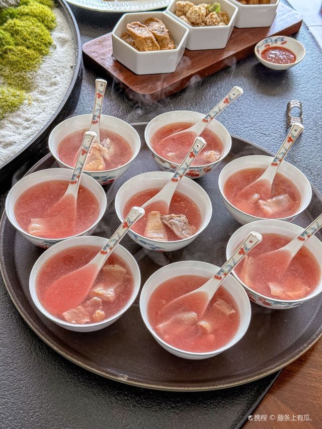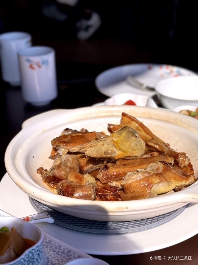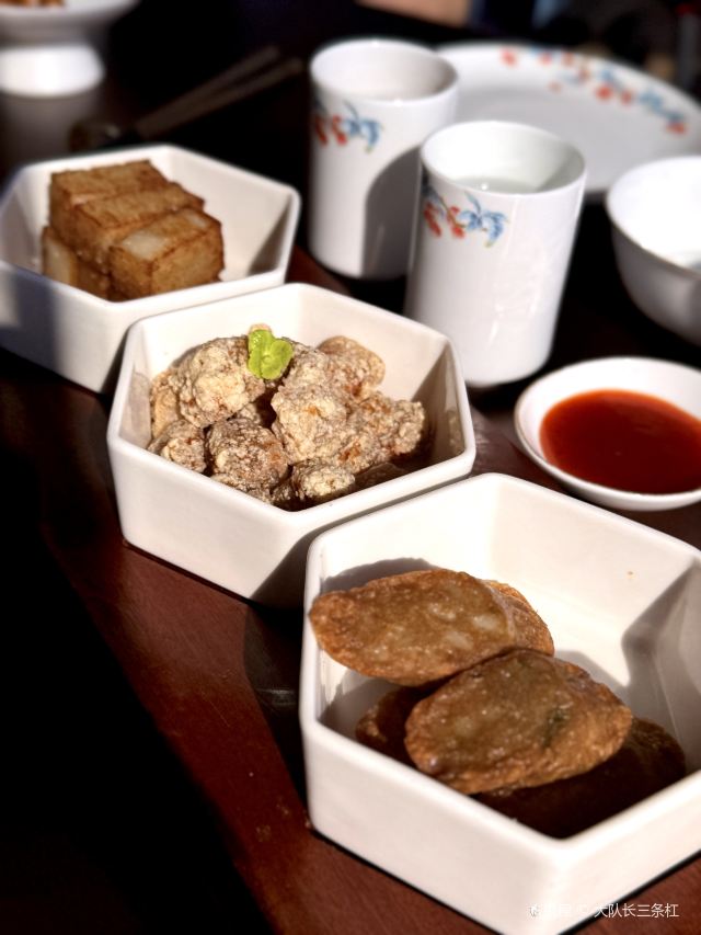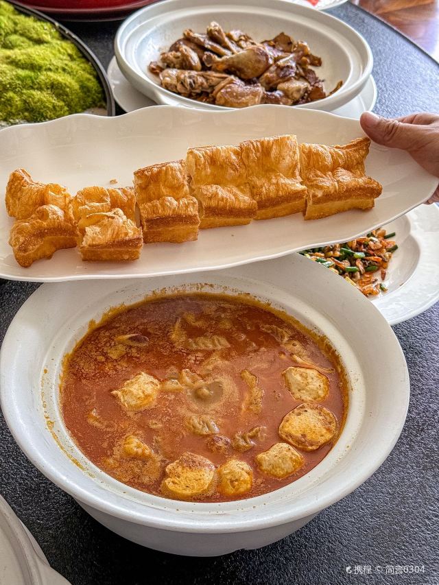 好的闽菜就是让普通的食材做出难忘的味道带家人来杨浦滨江边吃饭,旁边是丹东路码头开席先品一壶大红袍,也是闽宴特色 🥢闽南经典小吃 三款炸物先上桌,街头小吃变身前菜,醋肉圆滚滚,萝卜糕切小条,还有脆脆的五香卷,瞬间开胃 🦆翔安姜母鸭 开锅还有点烫口,鸭肉肥美不带多余油脂,妙在有姜片。没有姜味,焗到入味 🐟老菜脯蒸贵族巴浪鱼 只取中段,铺以盐卤豆腐,鱼肉细嫩刺少,老菜脯调味鲜 🍜莆田虾汤海鲜卤面 全场最佳是这道!红色虾汤的裹住每一根面条,虾仁和蚵仔倒成了点缀 🥜闽南花生汤配凤梨酥 甜品也不落俗套,现烘凤梨酥的香气,花生汤润而不甜 #身边的老闽南风情