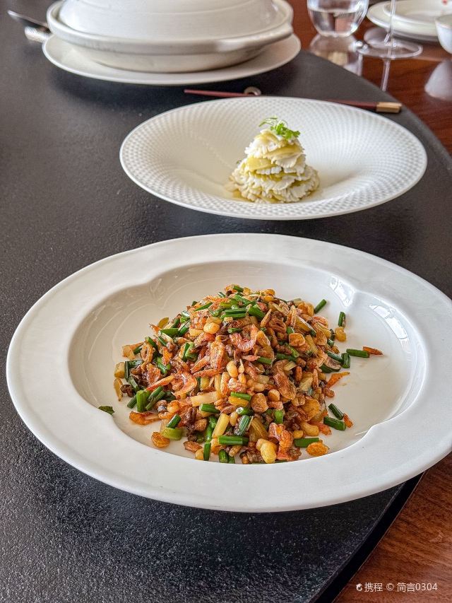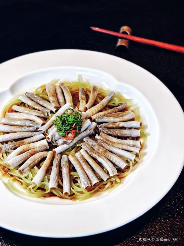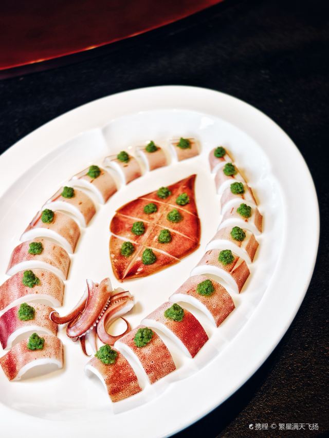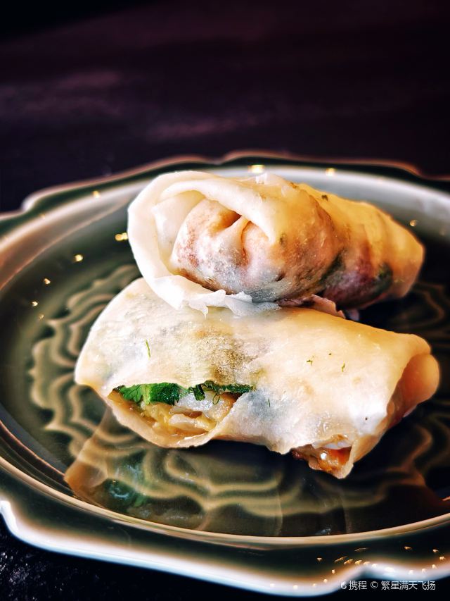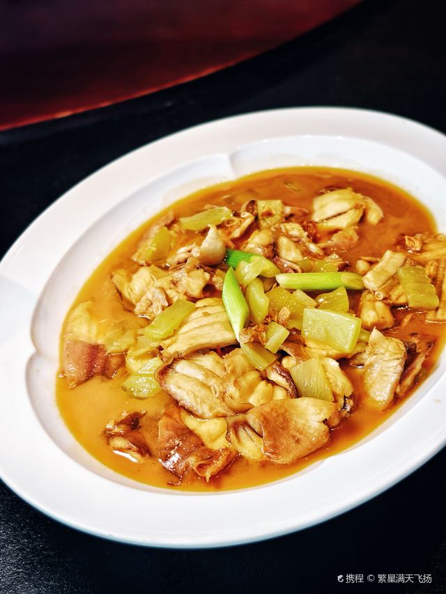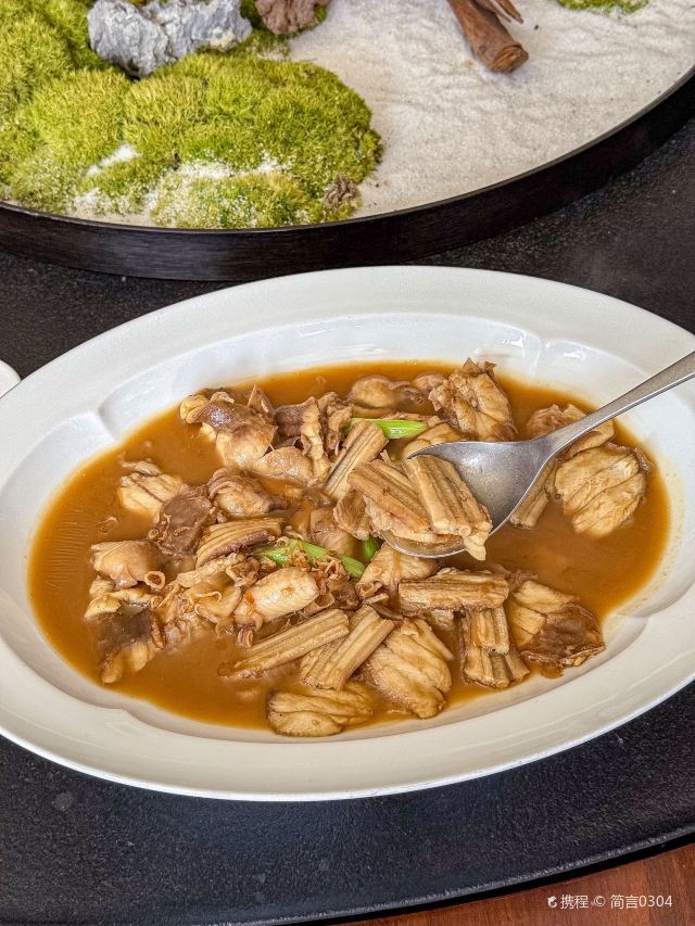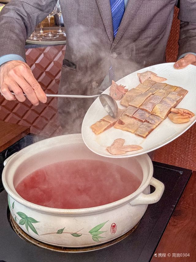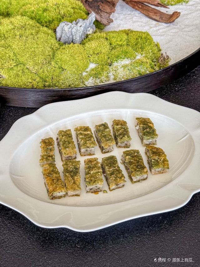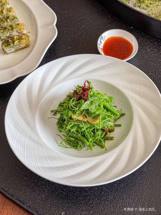 繁星满天飞扬杨浦是越来越让我欢喜了,总有新惊喜闪现。北外滩的玻璃幕墙外,黄浦江泛着粼粼波光。绕过码头,闽地春日的山海滋味已然铺展。 白灼东山手钓大管 白灼大管最考验食材本真。半掌宽的东山岛大管对剖如弯月,焯水时精准掐算秒数,入口脆嫩弹牙。主厨在顶端撒了莴笋干碎与青椒末,如同给白玉佩了翡翠璎珞——莴笋干的酥脆碰撞柔韧的管肉,海潮鲜甜里迸出春笋破土的清冽。 纹斑竹鱼两吃颇有巧思。鱼肉切片涮烫,带着一缕缕肉纷,紧而不散。鱼骨与文蛤共煨的奶白浓汤里,九层塔香气如闽南三月的风,卷着海港码头的烟火气扑面而来。比起经典的炣烧,我而爱这道透着香的奶白浓汤,不克制,也不张扬。 圆种糯米蒸松叶蟹 拆出整块蟹腿肉覆于油润米粒上,蟹膏融成凝脂灿在饭隙。不同于红蟳的浓郁,松叶蟹的清甜更衬得糯米甘香,让人想起雨后竹林里冒尖的春笋。 牛奶根焗长汀河田鸡 揭开砂锅的那一瞬间,山野气息漫溢。这种闽北特有的药根,也许跟五指毛桃同源吧,就连气味都有一些些的接近,在高温逼出类似椰香的木质芬芳。鸡肉吸饱了草本精华,皮脆肉嫩,恍惚看见戴云山脉晨雾里采药人的竹篓。 荠菜苦螺羹 分明是春日的具象化。螺肉在碧色清汤里若隐若现,荠菜汁滤得极净,只留一抹青草香。汤未入口,先嗅到雨后田埂的湿润气息,味如惊蛰微雷,在喉头轻轻炸开。 水仙茶奶冻 上层冷萃茶汤清透如琉璃,下层奶冻凝若羊脂。银匙破开时茶香与乳香缠绵升腾,仿佛晨露从水仙花瓣滚落,在武夷山涧碎成万千晶珠。 压轴的泉州润饼摊开春之画卷。胡萝卜丝、海苔碎、花生酥在薄饼上铺出斑斓色谱,甜辣酱是点睛的朱砂。咬下时脆响如踏碎枯枝,内里却包裹着湿润春意——这是闽南游子认亲的味觉密码,少了任何一味辅料,也便算不得舌尖的归乡了吧?! #美食旬味会 #美食林餐厅打卡
