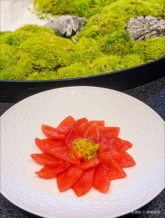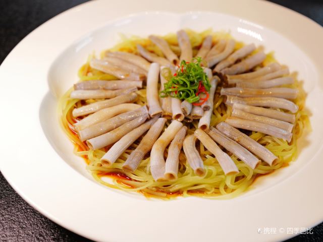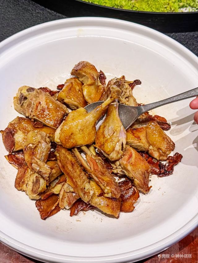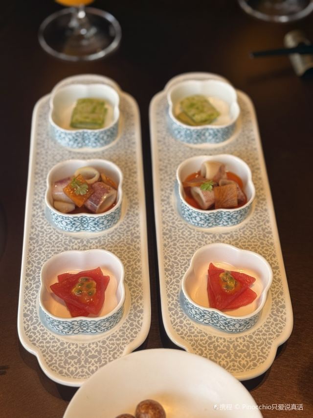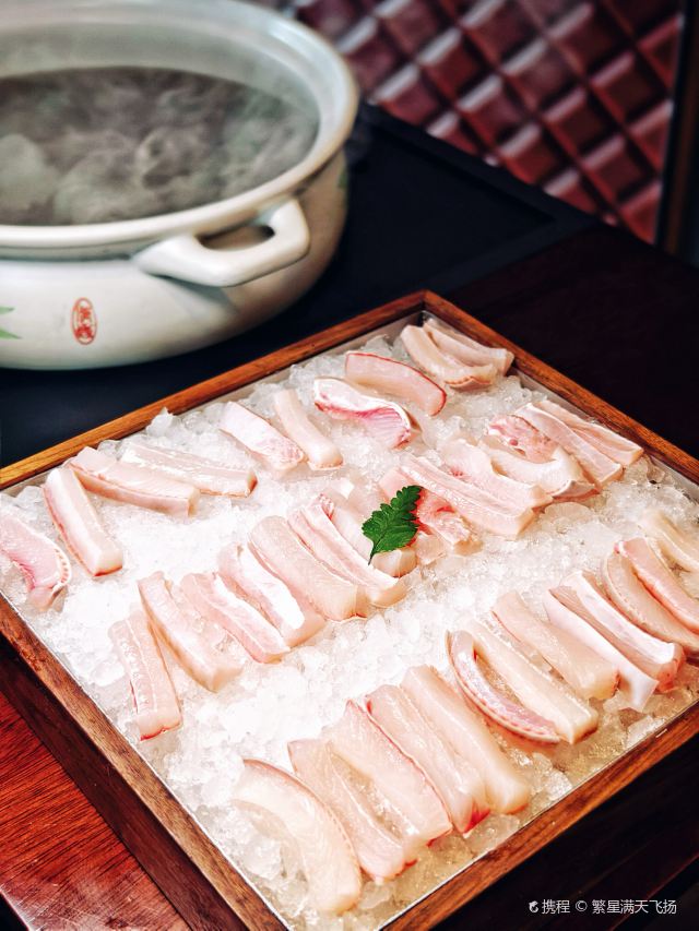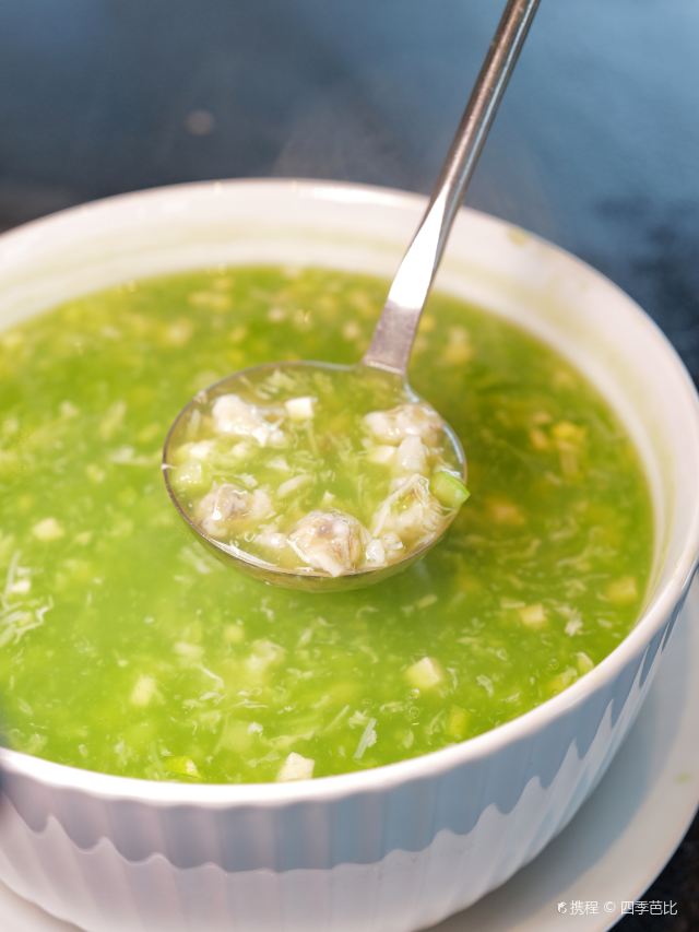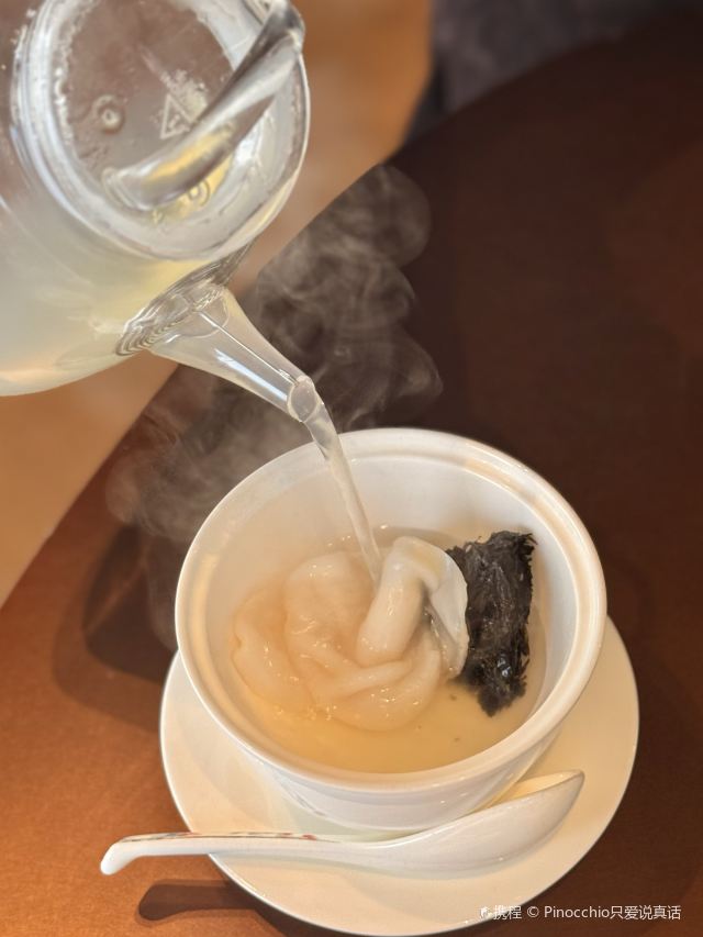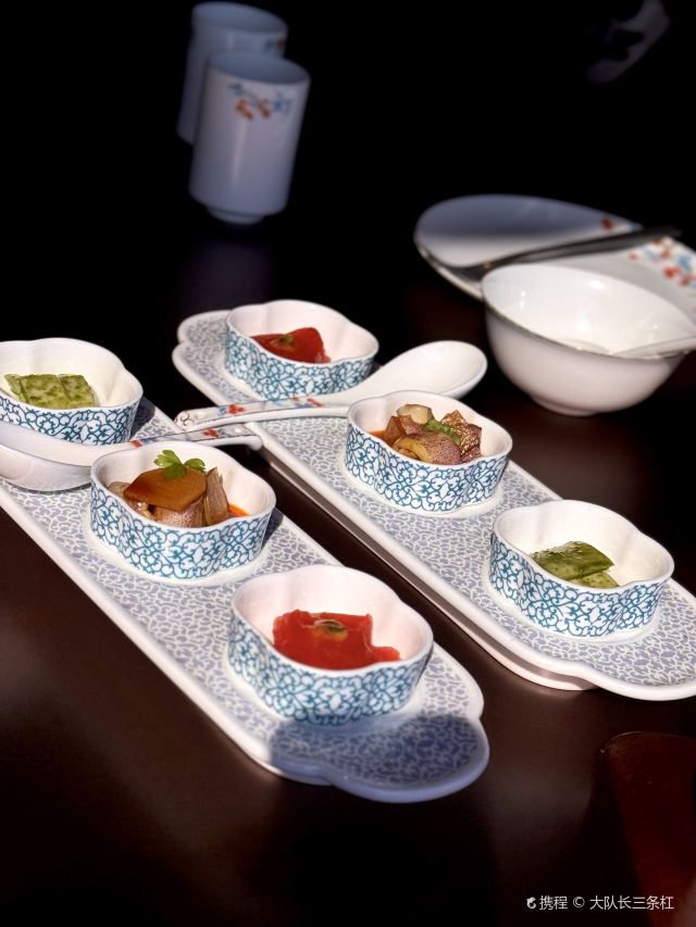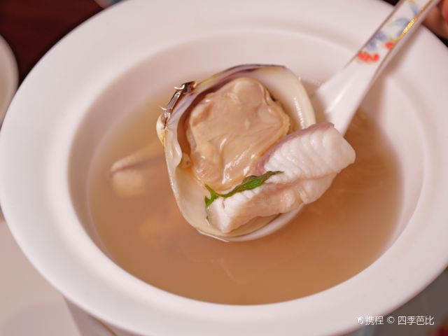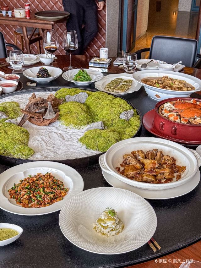 繁星满天飞扬杨浦是越来越让我欢喜了,总有新惊喜闪现。北外滩的玻璃幕墙外,黄浦江泛着粼粼波光。绕过码头,闽地春日的山海滋味已然铺展。 白灼东山手钓大管 白灼大管最考验食材本真。半掌宽的东山岛大管对剖如弯月,焯水时精准掐算秒数,入口脆嫩弹牙。主厨在顶端撒了莴笋干碎与青椒末,如同给白玉佩了翡翠璎珞——莴笋干的酥脆碰撞柔韧的管肉,海潮鲜甜里迸出春笋破土的清冽。 纹斑竹鱼两吃颇有巧思。鱼肉切片涮烫,带着一缕缕肉纷,紧而不散。鱼骨与文蛤共煨的奶白浓汤里,九层塔香气如闽南三月的风,卷着海港码头的烟火气扑面而来。比起经典的炣烧,我而爱这道透着香的奶白浓汤,不克制,也不张扬。 圆种糯米蒸松叶蟹 拆出整块蟹腿肉覆于油润米粒上,蟹膏融成凝脂灿在饭隙。不同于红蟳的浓郁,松叶蟹的清甜更衬得糯米甘香,让人想起雨后竹林里冒尖的春笋。 牛奶根焗长汀河田鸡 揭开砂锅的那一瞬间,山野气息漫溢。这种闽北特有的药根,也许跟五指毛桃同源吧,就连气味都有一些些的接近,在高温逼出类似椰香的木质芬芳。鸡肉吸饱了草本精华,皮脆肉嫩,恍惚看见戴云山脉晨雾里采药人的竹篓。 荠菜苦螺羹 分明是春日的具象化。螺肉在碧色清汤里若隐若现,荠菜汁滤得极净,只留一抹青草香。汤未入口,先嗅到雨后田埂的湿润气息,味如惊蛰微雷,在喉头轻轻炸开。 水仙茶奶冻 上层冷萃茶汤清透如琉璃,下层奶冻凝若羊脂。银匙破开时茶香与乳香缠绵升腾,仿佛晨露从水仙花瓣滚落,在武夷山涧碎成万千晶珠。 压轴的泉州润饼摊开春之画卷。胡萝卜丝、海苔碎、花生酥在薄饼上铺出斑斓色谱,甜辣酱是点睛的朱砂。咬下时脆响如踏碎枯枝,内里却包裹着湿润春意——这是闽南游子认亲的味觉密码,少了任何一味辅料,也便算不得舌尖的归乡了吧?! #美食旬味会 #美食林餐厅打卡