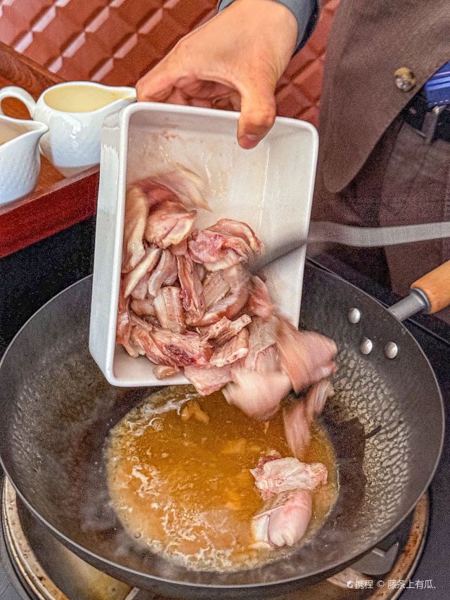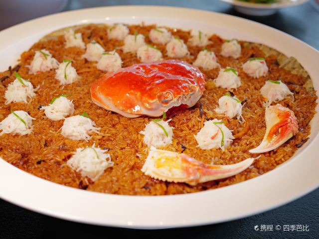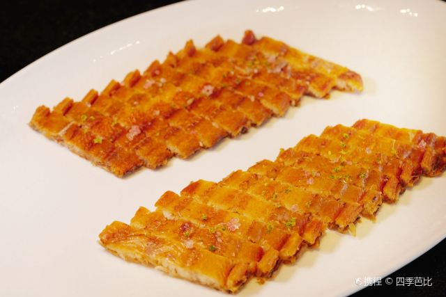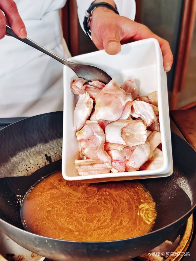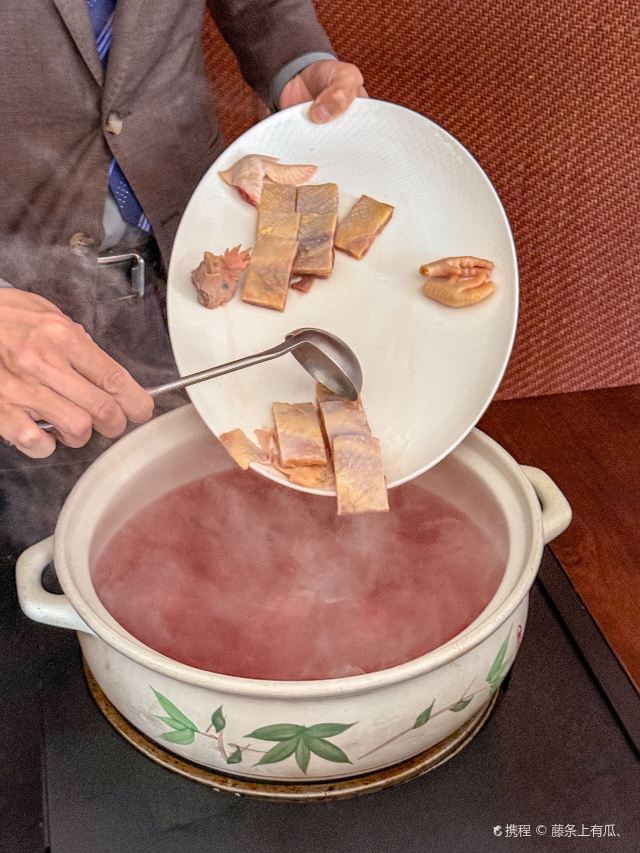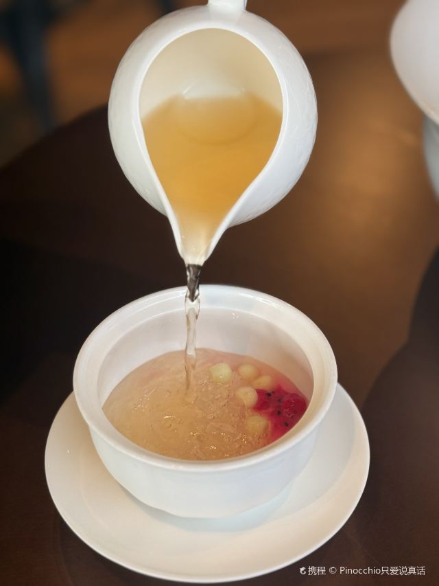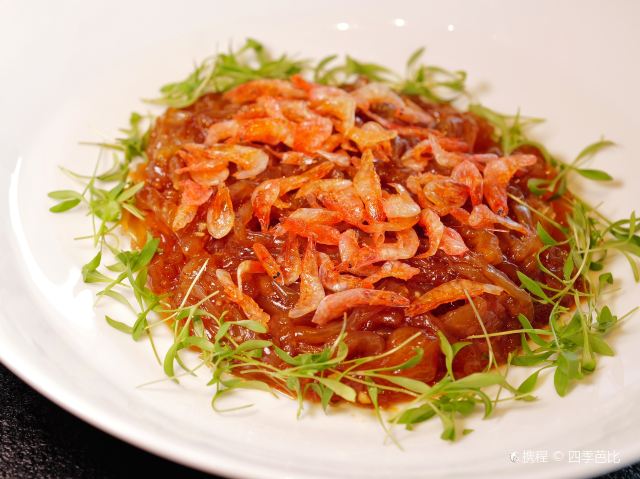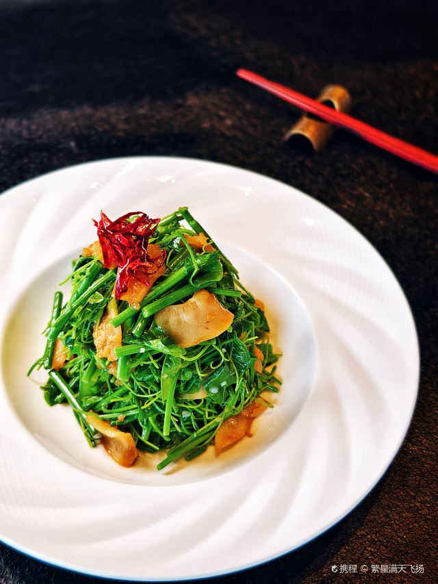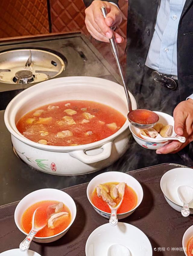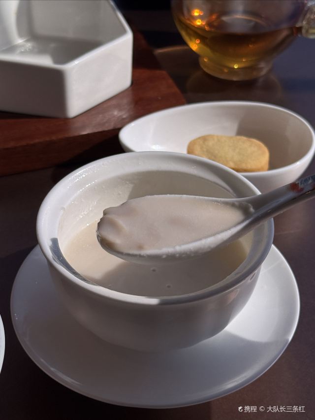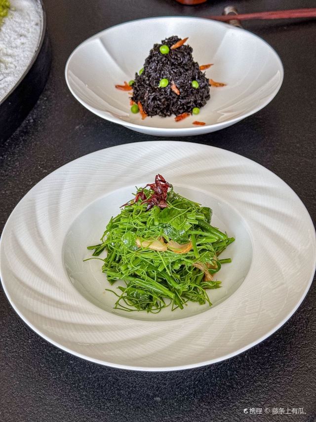 繁星满天飞扬杨浦是越来越让我欢喜了,总有新惊喜闪现。北外滩的玻璃幕墙外,黄浦江泛着粼粼波光。绕过码头,闽地春日的山海滋味已然铺展。 白灼东山手钓大管 白灼大管最考验食材本真。半掌宽的东山岛大管对剖如弯月,焯水时精准掐算秒数,入口脆嫩弹牙。主厨在顶端撒了莴笋干碎与青椒末,如同给白玉佩了翡翠璎珞——莴笋干的酥脆碰撞柔韧的管肉,海潮鲜甜里迸出春笋破土的清冽。 纹斑竹鱼两吃颇有巧思。鱼肉切片涮烫,带着一缕缕肉纷,紧而不散。鱼骨与文蛤共煨的奶白浓汤里,九层塔香气如闽南三月的风,卷着海港码头的烟火气扑面而来。比起经典的炣烧,我而爱这道透着香的奶白浓汤,不克制,也不张扬。 圆种糯米蒸松叶蟹 拆出整块蟹腿肉覆于油润米粒上,蟹膏融成凝脂灿在饭隙。不同于红蟳的浓郁,松叶蟹的清甜更衬得糯米甘香,让人想起雨后竹林里冒尖的春笋。 牛奶根焗长汀河田鸡 揭开砂锅的那一瞬间,山野气息漫溢。这种闽北特有的药根,也许跟五指毛桃同源吧,就连气味都有一些些的接近,在高温逼出类似椰香的木质芬芳。鸡肉吸饱了草本精华,皮脆肉嫩,恍惚看见戴云山脉晨雾里采药人的竹篓。 荠菜苦螺羹 分明是春日的具象化。螺肉在碧色清汤里若隐若现,荠菜汁滤得极净,只留一抹青草香。汤未入口,先嗅到雨后田埂的湿润气息,味如惊蛰微雷,在喉头轻轻炸开。 水仙茶奶冻 上层冷萃茶汤清透如琉璃,下层奶冻凝若羊脂。银匙破开时茶香与乳香缠绵升腾,仿佛晨露从水仙花瓣滚落,在武夷山涧碎成万千晶珠。 压轴的泉州润饼摊开春之画卷。胡萝卜丝、海苔碎、花生酥在薄饼上铺出斑斓色谱,甜辣酱是点睛的朱砂。咬下时脆响如踏碎枯枝,内里却包裹着湿润春意——这是闽南游子认亲的味觉密码,少了任何一味辅料,也便算不得舌尖的归乡了吧?! #美食旬味会 #美食林餐厅打卡
