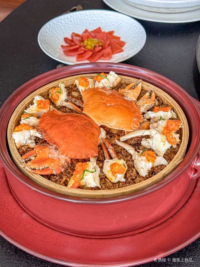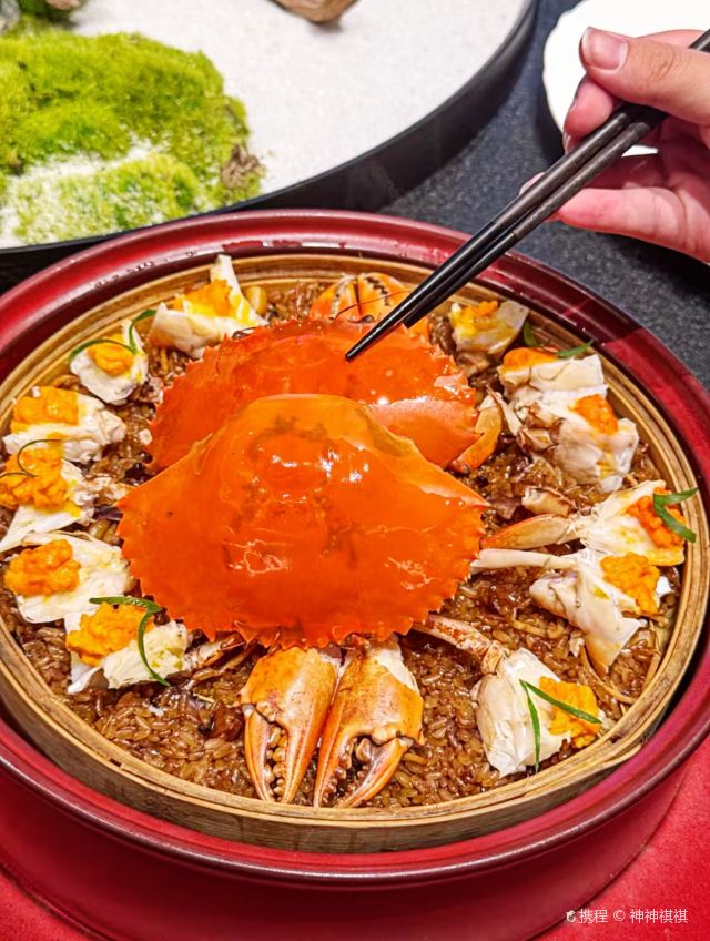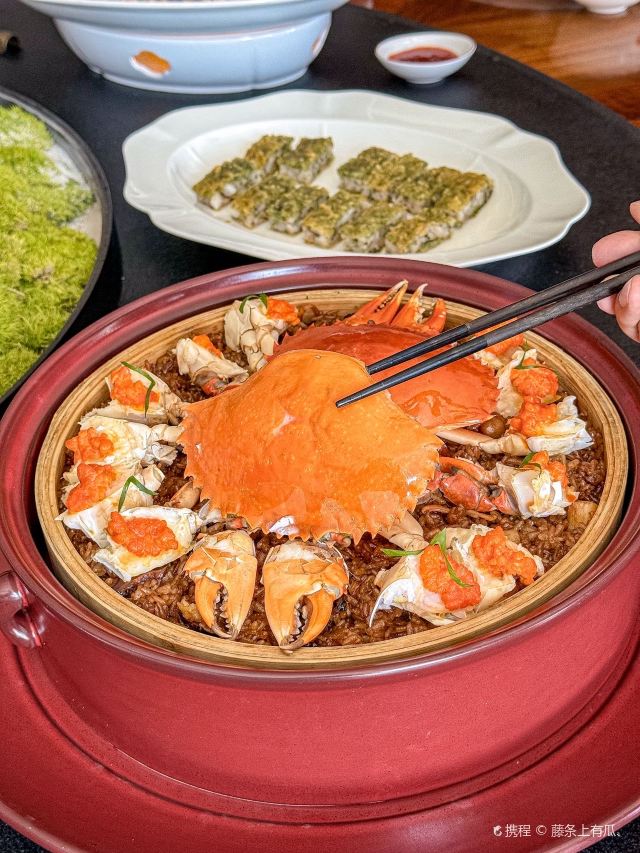 藤条上有瓜、坐拥一线江景的闽菜神仙馆子被我挖到啦! 推门瞬间仿佛掉进闽南渔村故事里 整面落地窗就像流动的山水画 货真价实的福建活鲜池里游着狗鲨 顶楼空中花园连空气都带着黄浦江咸鲜🌊 🦀漳州红树林膏蟹蒸圆种糯米 掀开盖子差点被金光晃到眼! 膏蟹的油膏多到能拌三碗饭 吸满海鲜精华的糯米饭自带咸香 贴心拆好的蟹钳让我实现优雅啃蟹 🐟台海炣纹斑竹鱼 现捞现炣的鲜嫩暴击! 鱼肉像云朵般化在嘴里 带着淡淡柴火香的酱汁 让我连鱼骨头都嗦了三遍 🐔姜葱葵花鸡 鸡皮闪着琥珀色的光芒 连鸡胸肉都嫩得飙汁 简简单单的姜葱调味 吃出了小时候外婆家的味道 ✨坐在窗边看游轮缓缓驶过 夹一筷子膏蟹拌饭送进口中 突然就懂了"人间值得"的意思 📍闽润(杨浦滨江店) #美食地图 #江景餐厅打卡 #闽南风味 #城市宝藏餐厅 #吃货日常