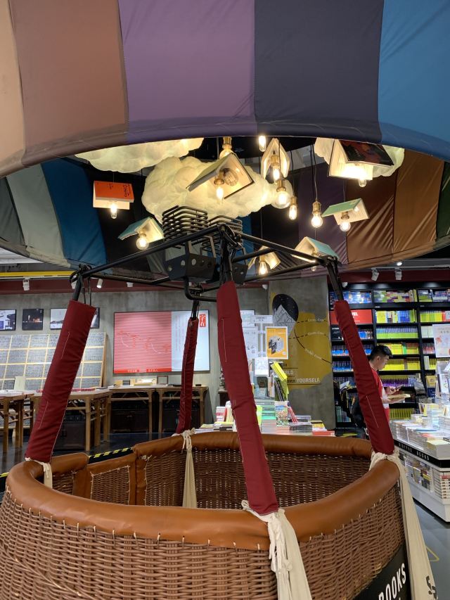 雨丝风片【位置】以前的百联世茂装修后重新开张改叫世茂广场了。这店在三楼西区。电梯上去就能看到。位置很好找。 【环境】去了这么多书店,这家的环境是我最喜欢的。店里一直放着优雅的轻音乐。最关键的是来这的人算是比较文明的。店里几乎没啥人大声喧哗的,大家都生怕弄出声音,影响别人。除了店里的背景音乐,这里几乎比上图还安静。整个店的布置比较合理,既有吸引眼球的热气球篮子,又有好玩的小摆设,但这些摆设并没有喧宾夺主,书还是第一位的。 【商品】书店书店,当然是书为先。可现在很多号称书店的都是店为先,书只是摆设。还好这家书店基本还是以书为主,选的书大部分比较有品,且大部分的书都能翻阅,少部分的书被包得严严实实,无法翻阅。如果是书本身有包装,书店为了避免损耗可以把这些书放在库房里,只拆一本作为样品放在外面,而不是所有的书都包得严严实实放在外面,让有需要的人翻阅。我就搞不懂了,人家到实体店来买书不就是为了翻翻书看看里面的内容再决定买哪本吗?为什么实体店的书现在都搞那么多包装,不能翻看呢?那人家还来你实体店干嘛?不如上网买还便宜点呢?! 【服务】服务还不错,书店内有几张桌椅可以免费坐。咖啡馆跟书店分开,在另一个区域,有门窗,理论上来说关上可以隔音,但实际是不关的。方便那些冒充书虫来书店咖啡馆开会谈生意的人。书虫们和伪书虫们基本上互不影响。