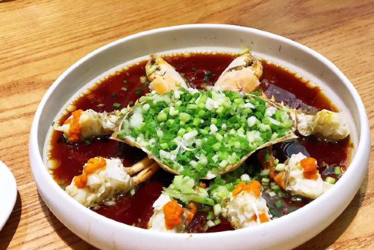 蟹黄灌汤包有点腥,从小洞里倒了半碟醋;葱油膏蟹是活蟹但偏甜,性价比不高,吃的厨子明天想去菜场[偷笑]少爷不在好嗨哟[呲牙]