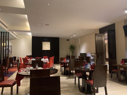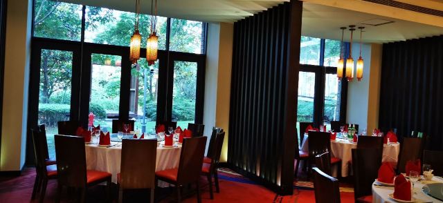 Yi Lin Xuan Chinese Restaurant几个月前家里领导就说起过这家餐厅,不知谁介绍的,领导就想去尝鲜。打电话预订,很吃惊,说中午餐厅给包场了,连住店客人吃饭都成问题,五星酒店这种情况似乎从没听说过。这次顺路办事来住上一晚,逸林轩晚上五点半开门,第一时间跑去。还好去的早,餐厅真的不大,厅里也就是放五张圆桌,每桌十个人不算宽舒,旁边落地窗外的景色怡人。没预订的我们就给安排到边上一个大包房,里面放了几张散桌,还给预订了一张。服务生给了个Pad自己选菜,品种不多,好多菜都没有,连清炒鳝丝、蟹粉豆腐都拿不出,看样子真的是工作日住店客人少,原料进货也少,供应能力有点跟不上。还好,端上来的菜做的还算不错,店家推荐的鲜时湖菱炒毛豆,菱角很新鲜,但毛豆有点硬;酱爆河虾做的不错,稍咸,正好下饭;角里草头饼出人意料好吃,而且是带点甜味,有点糖年糕的口感。至于那个农家白菜烧大蛋饺做的口感略粗,肉切的不够细密,比较接近原生态的农家菜。发票是纸质的,服务生培训不够到位,开票的一些要求不熟悉。另外,这里有15%服务费,总算价格尚可,不算太贵,但算不上很好的餐厅,风景宜人,名气而已