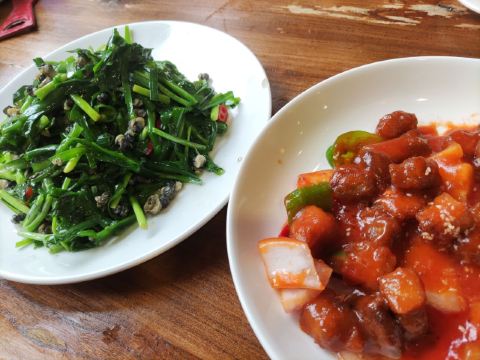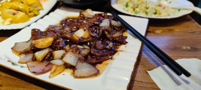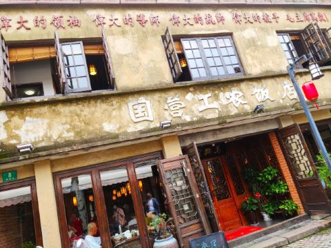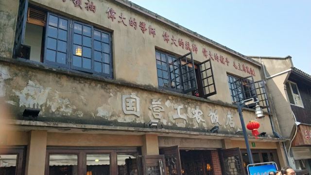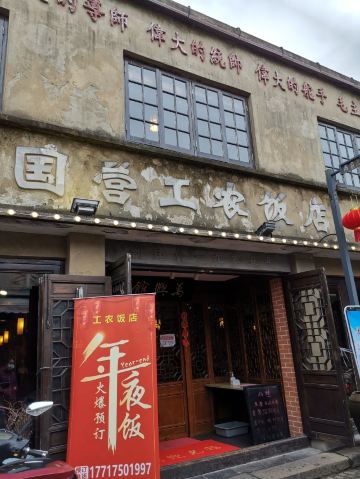 上海川沙古镇上有一家国营工农饭店,建筑外观陈旧斑驳,上书红色的“四个伟大”和毛主席万岁标语,还有创建于一九零五年字样。内部江南风格装饰,主打本帮菜,价格适中,口味较重。
