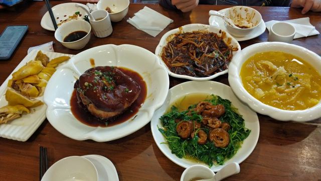 响油鳝丝,清蒸桂鱼,本帮八宝辣酱,特色红烧肉,草头圈子,白斩鸡,红烧河鳗,三黄鸡,扣三丝,特色蹄髈,特色发糕,八宝辣酱,本帮红烧肉,发糕,海鲜面疙瘩,广式白斩鸡,清蒸开背桂鱼,干锅千页豆腐,干锅有机花菜