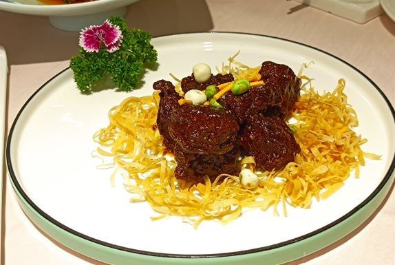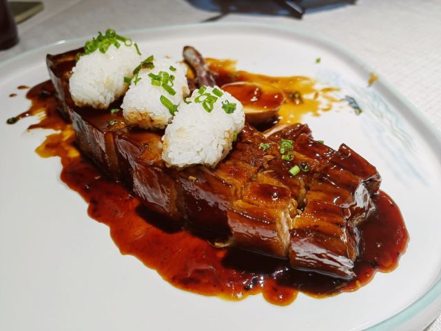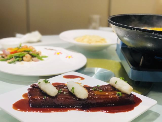 桃桃淘丽丝陕西南路的老牌酒店里藏着这么家本帮菜餐厅,要不是盆友介绍,还真不晓得类,马勒别墅对面,延安中路高架桥下,无论公共交通还是自驾,都是非常方便的; 5楼整层都是它家,包房非常多,从4人小聚到10人以上的家庭聚会,都可以满足,每间房里,都可以看看外面的风景,布置的也挺古色古香; 菜品从摆盘到口味,都挺️特色的,厨师们的创新意识非常的给力 招牌红烧肉,还真没见过这样的出场方式啊,除了震撼也没别的了,在如今猪肉价高的世道下,能吃上这样口感香甜,入口即化的肉肉,能不泪流满面嘛…… 水库彩椒鱼头也是道IN菜,鱼肉真的非常鲜嫩,鱼刺稍微多了些,需要慢慢享用,面条稍煮一会儿就可以捞上来吃了,️嚼劲,配上鱼汤,吃下两碗小case; 包房里有专人服务,真的是眼明手快型选手啊