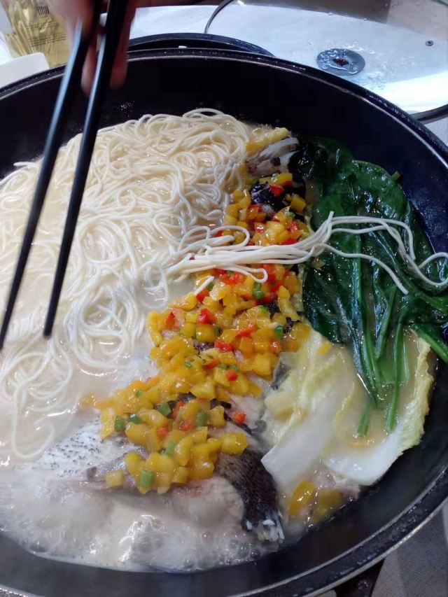 小苹果花苑[薄荷]环境: 舜记餐厅位于城市酒店的5楼,马路对面就是马勒别墅,这里的地理位置绝佳,坐在包房的窗边就能把繁华美丽的街景尽收眼底。这里的用餐环境优雅大气、闹中取静,让客人们感到惬意和放松。 菜肴方面,餐厅选用新鲜健康的食材,坚持烹饪的原汁原味,菜品的选择上也是很丰富的,不管从摆盘到口味,都有自己特色,很适合上海人的口味。 |鱼头捞面^ 本人太爱这锅彩椒鱼头捞面了,一大锅够三个人一起品尝,老少都会喜欢,鱼汤鲜美,微辣回甘,鱼肉鲜嫩,q弹的面条,吸饱了浓郁的汤汁,吃起来也不会感到特别的油腻,面条稍煮一会儿就可以捞上来吃了,️绝对有嚼劲,久煮也不会烂,配上鱼汤和鱼肉,一碗接着一碗的节奏。 [服务铃]服务: 包房里有专人服务,服务员态度和蔼,细致周到,点餐和上菜速度都很快,同时还会主动介绍菜品和吃法。送菜机器人会把菜肴送到包房门口,服务员再把菜肴端上桌,深受小朋友们的喜爱。 友情提示:目前店家推出了性价比很高的午市套餐,喜欢本帮菜的朋友们千万不要错过了。