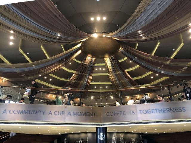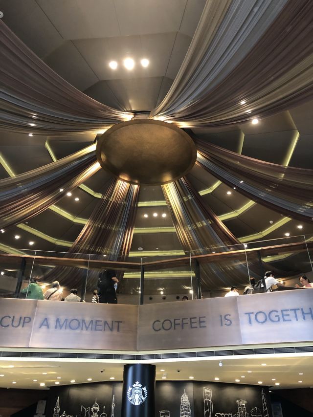 玩一天累到不行的时候,一杯星爸爸简直是可以立马续命的存在啊!这家星爸爸开在迪士尼小镇上,一个独立的圆形房子,里面有两层楼,很喜欢这里的设计风格,可是永远都是人流攒动就稍微有点减分了,另外采光没有那么好也有小小的遗憾!