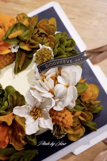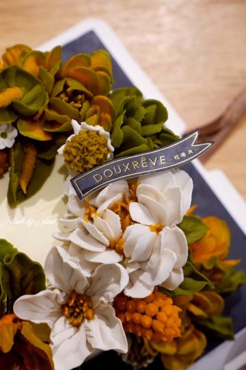 理想生活志之前路过看到过这家店@杜哈夫西点 ,本来在光合新座的,后来搬到楼上去了。门口的摆设很喜欢,特别喜欢slogan:有一种甜叫杜哈夫。 这里的蛋糕做的都很好看,是之前很流行的韩式裱花,团购的价格还真的不贵。韩式裱花颜色艳丽,色精彩缤纷,造型更是非常逼真,花朵品种、形态、色泽大部分都源于天然的元素。 奶油霜的成分主要是黄油和糖,不喜欢吃的朋友可以选择豆沙裱花,豆沙裱花不需要添加奶油或者黄油,如果选用进口豆沙,甜度也比较低,会更加健康。 正好宝宝要生日了,货比三家后,选了这家。狮子座的生日蛋糕是小狮子,毛发和样子做的还蛮逼真的,下面好像是巧克力,比较适合男孩子啦。 这款海盐蛋糕性价比真的好,据说是招牌之一,用的是安佳奶油,加了一点香草卡仕达酱,没有一点点植物奶油,味道很纯。吃起来奶油很绵密,不甜不腻。蛋糕胚子比较紧实,真材实料啊!