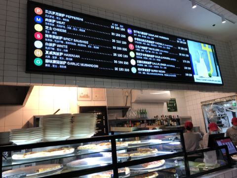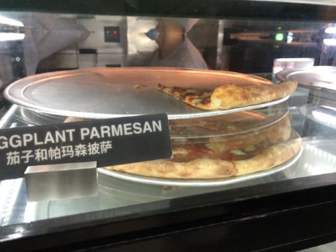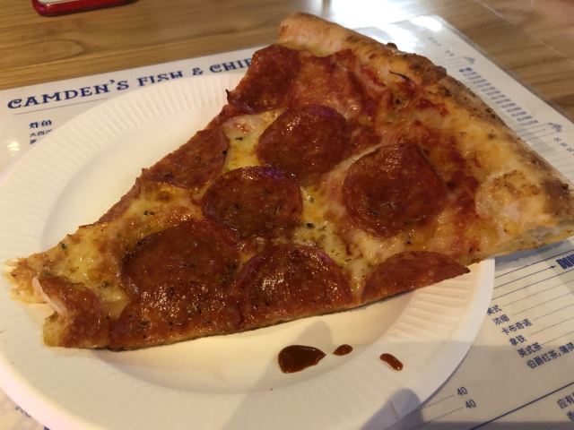 这家披萨是16寸大号披萨切片卖的,1/8一片份量也是蛮足的,上面的料也很丰富,各款披萨出炉后在橱窗里放着,点单后会再加热一下,方便快捷,也可以等新出炉的想要的口味。口味有十多种,有常驻热门款也有季节限定款,可以各取所好。